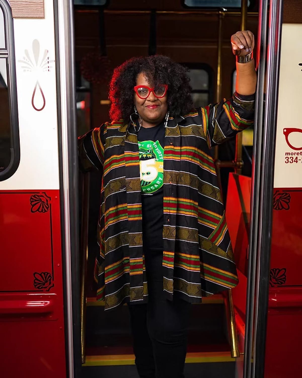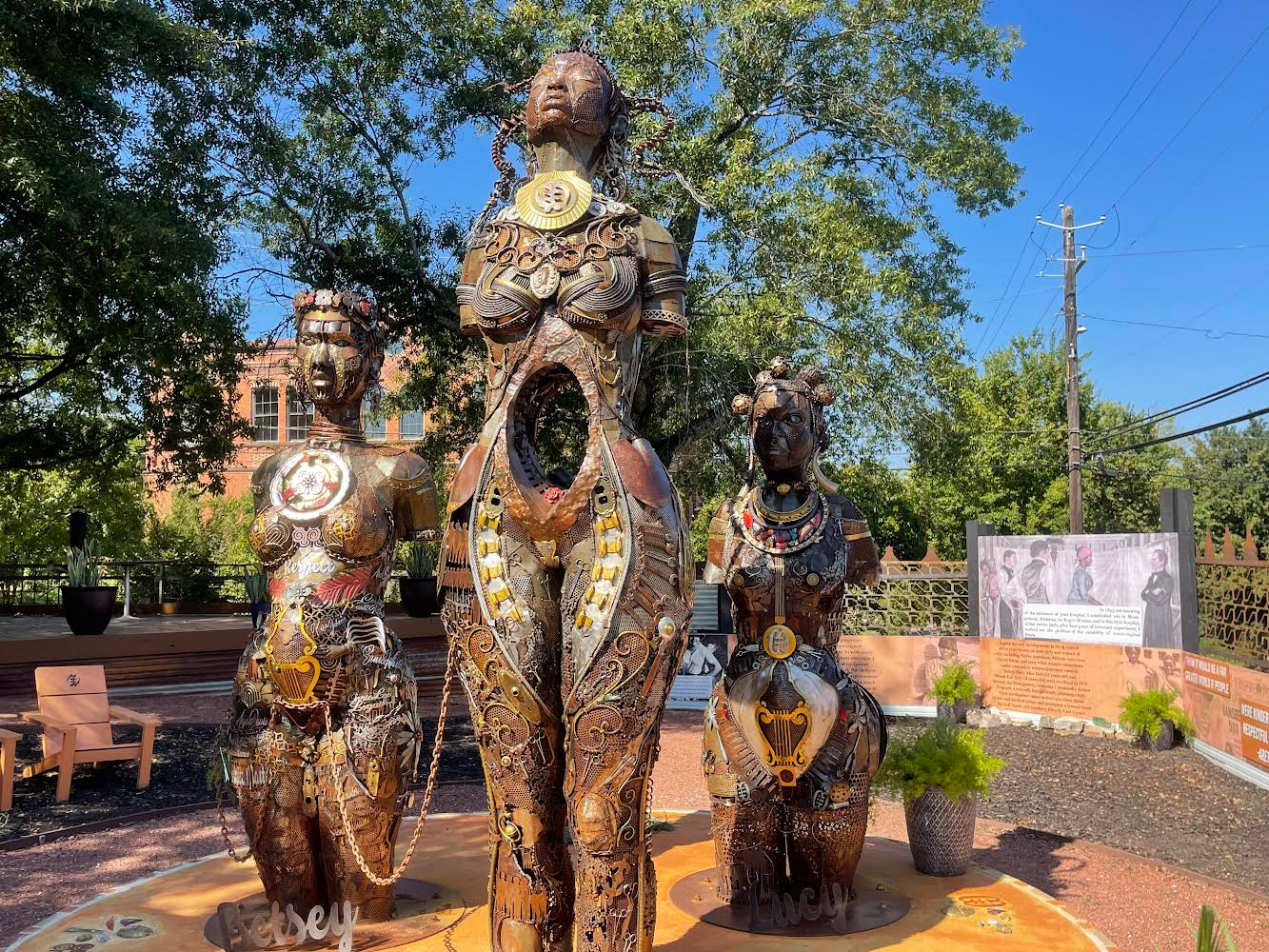 The artwork stands in Browder’s More Up campus, which consists of the Mothers of Gynecology Monument Park, a gift shop, and soon the Creative Changemakers Museum and the More Up Traveler Center. The museum will be dedicated to exploring the unknown stories of Anarcha, Lucy, and Betsey, as well as Montgomery’s role in medicinal history. In addition, the travelers center will provide education and temporary housing for travelers and activists visiting Montgomery. The campus lot is also the headquarters for Browder’s More Than Tours company, which teaches visitors about Montgomery’s history of slavery, racism, and the Civil Rights Movement.