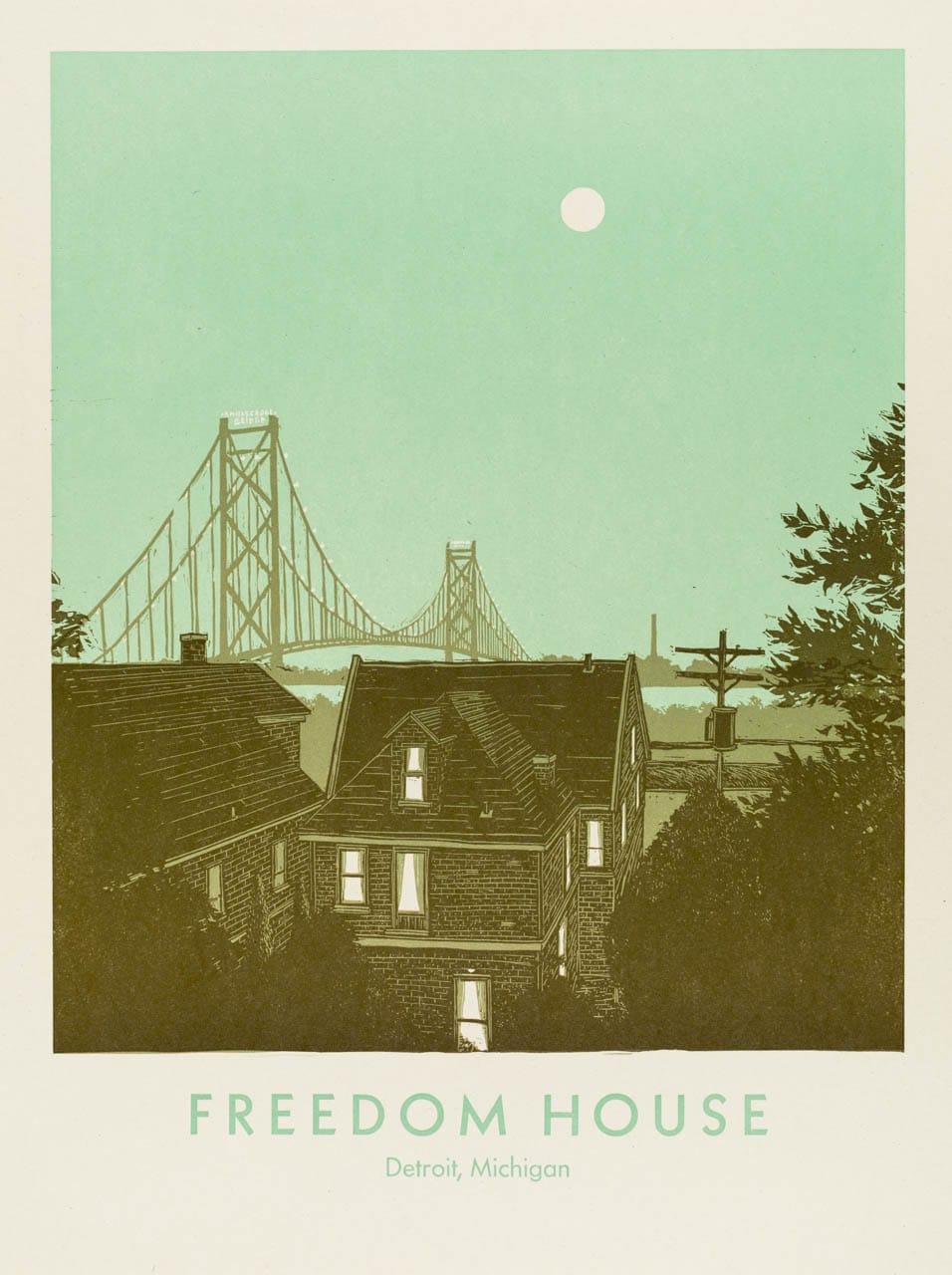 Pat Perry is an artist from Michigan who writes and makes astonishingly detailed images, at both small and large-scale, “through careful and cautious observation.” He lives in Detroit, but describes his process as working itinerantly. He chose Freedom House Detroit, a legacy organization in the city, and a well-known temporary home for indigent survivors of persecution from around the world, seeking asylum in the United States and Canada. Their mission is to uphold a fundamental American principle, one inscribed on the Statue of Liberty, providing safety for those “yearning to be free.” Guided by a belief that all persons deserve to live free from oppression and to be treated with justice, compassion, and dignity, they offer a continuum of care and service to residents, as well as to other refugees in need, as well as serving as an advocate for systemic change that more fully recognizes the rights of asylum seekers.