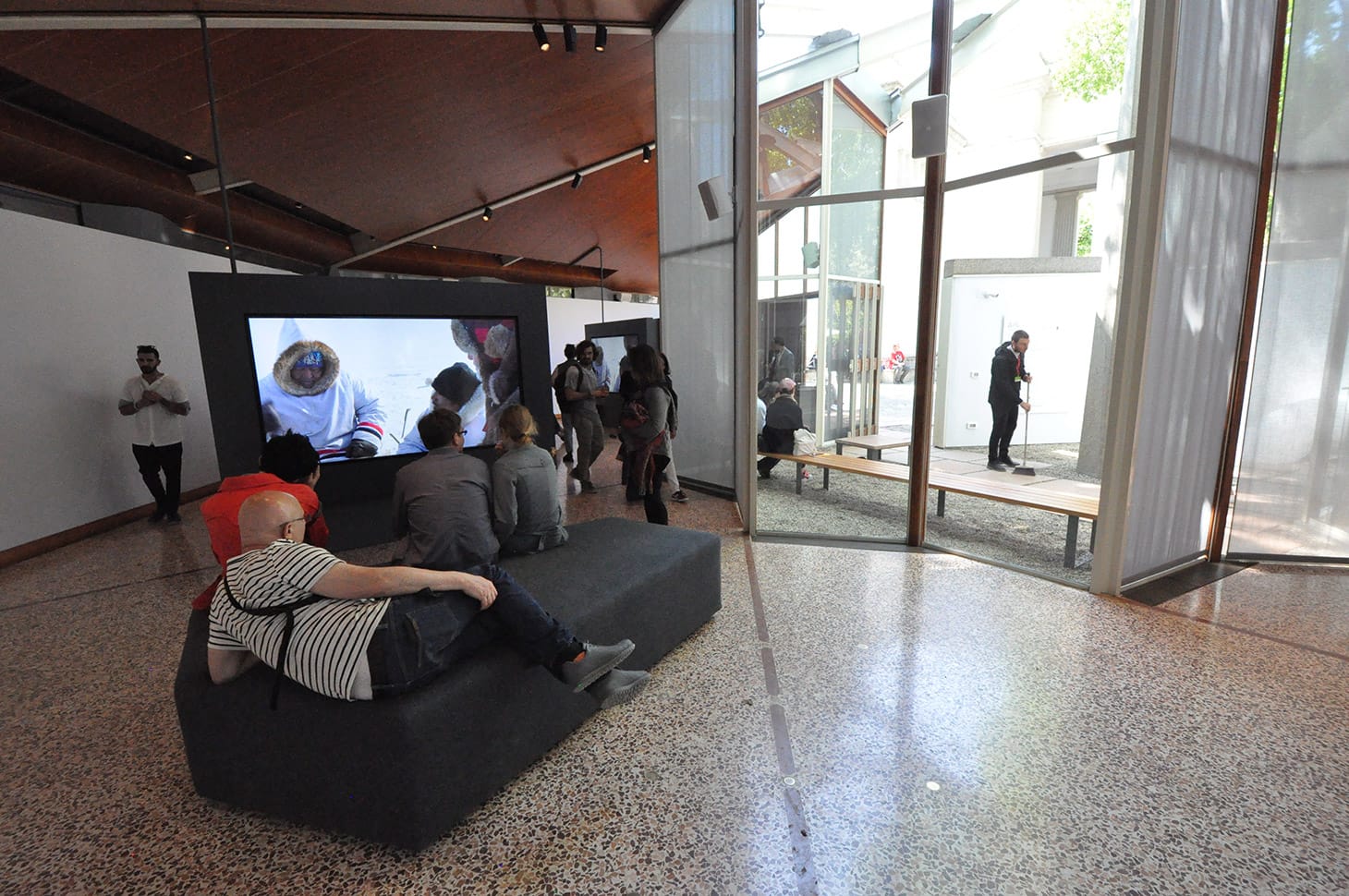In the context of the Canada Pavilion, this film is presented beside Isuma Online, a collection of films in Inuit and other Indigenous languages from across the globe available free of charge on Isuma TV and iTunes, and a series of live webcasts from Baffin Island. The webcasts center on contemporary land issues for the Inuit as their island is again under threat, this time from a multinational corporation planning to build a railroad and supertanker route. The clock continues to tick, as 1961 becomes the present, and territory and its use remain the focus.