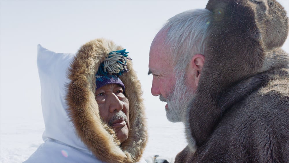 The film opens with a view of the landscape Kapuivik, on North Baffin Island in 1961. A broad, snow- and ice-covered plain stretches horizontally with sod homes and sleigh dogs in the middle distance, and above the horizon a bright, low-hanging sun glows from the center of the scene. The only sounds are a ticking clock and a murmuring voice. It is the same year that Yuri Gargarin landed on the moon, the Berlin Wall was built, and that John F. Kennedy established the Peace Corps. It is also the year that Inuit Elder Noah Piugattuk was told he and his family could no longer inhabit their ancestral lands on the northern reaches of Canada’s coastline.
