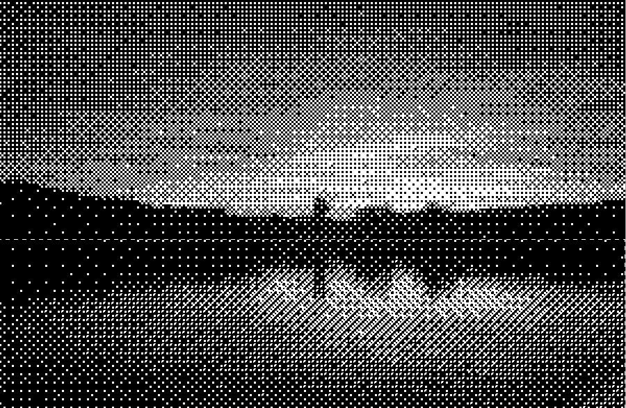 This park overlooks a faraway ocean, but is closed at sunset for the ten minutes it takes the sun to drop below the horizon line. During this time, viewers go to nearby viewfinders that translate the sunset into a more familiar language of selected bits, undulating from off to on.