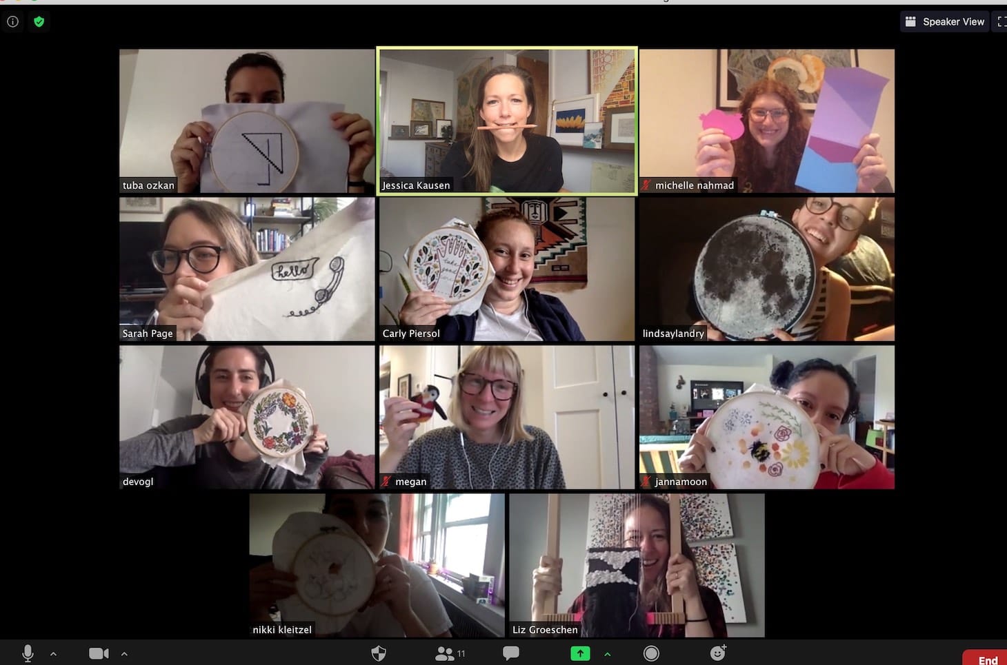 Four friends and I started having these craft-based get-togethers over Zoom in early May, after helping our friend Jessica Marquez do a practice run of her first online embroidery class. It was so refreshing to just chat and make stuff together that we decided to make it a regular thing. We had met each other more than a decade ago at Craft Night, a program I founded in 2007 at Etsy’s HQ in Brooklyn and led for several years. So, a craft night was not only how we started our friendship, but has also become a way to support each other long-distance during a pandemic. These times together apart — to borrow the name of the podcast that The Art of Gathering author Priya Parker started during the pandemic — has been a lifeline for me and a source of joy to anticipate each week.