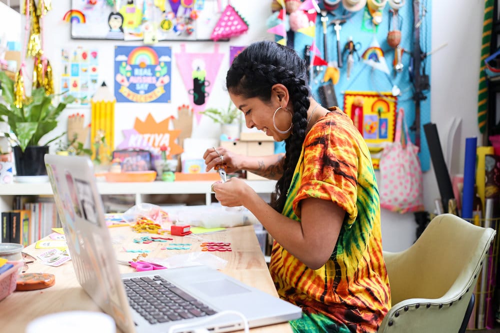 For some artists and designers, in-person workshops were an important source of income and personal connection before the pandemic hit. Now that such gatherings aren’t safe or possible, shifting these events online is one way to keep business going and stay connected. For Kitiya Palaskas, a designer in Melbourne, who specializes in colorful craft-based work, the need to pivot her business and diversify her income became clear when much of the design work and in-person craft workshops she had lined up disappeared when lockdown started.