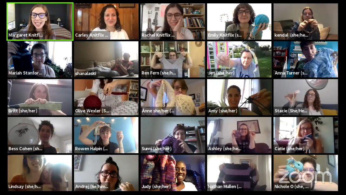 Knitting and watching movies together was initially a way for four friends from the same New York theatre group to stay in contact during the pandemic, a get-together they dubbed Club KnitFlix. But the concept quickly transformed into something bigger than themselves. The friends — Carley Santori, Rachel Bass, Margaret Leisenheimer, and Emily Williams — wanted to support the Black Lives Matter movement, and they decided to tap into knitting as a means to fundraise. The idea grew into the epic 12-hour KnitFlix Knitathon that brought together 56 crafters and 500 donors to raise a total of $20,175 to support four social justice organizations: the Loveland Foundation, the NAACP Legal Defense and Education Fund, G.L.I.T.S., and Disabled But Not Really.
