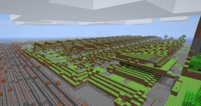 An online community has grown up around the Minecraft world with players sharing what they come up with using the game’s deceptively simple engine. In fact, the Minecraft world is so dynamic and so atomized that there’s no limit to what people can create, from rollercoaster minecart rides to functioning simple computers using the game’s equivalent of electricity. Users swap tips and tricks, diagramming out “recipes” to make objects and ways to use the engine to better aesthetic effect. The best and most complex works rise to the top, garnering YouTube hits and blog posts links by way of accolades.