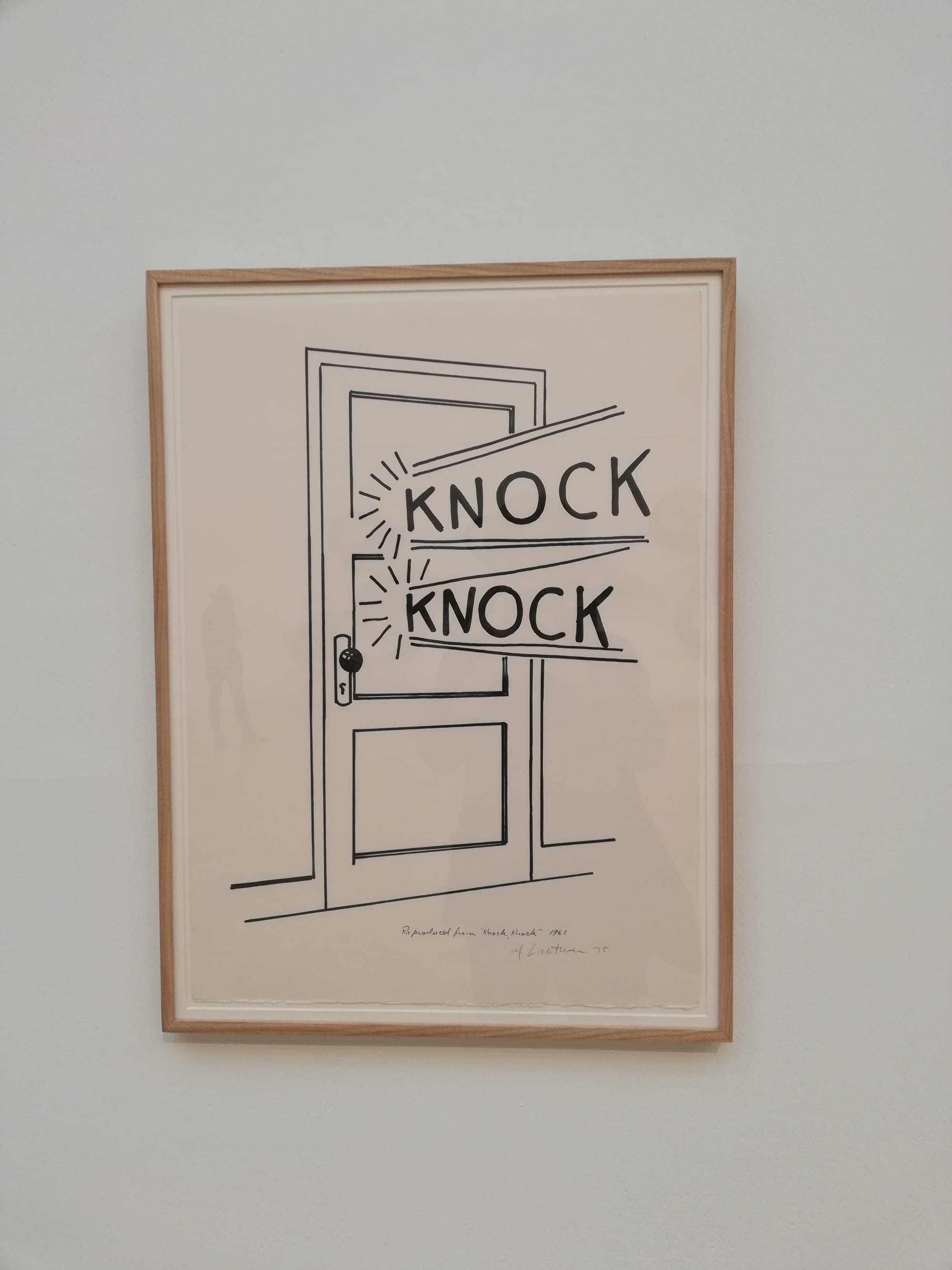 Knock Knock throws art viewers into the weird situation of laughing at the overspecialization of our language in that language, deriding the exclusivity of in-jokes with further in-jokes