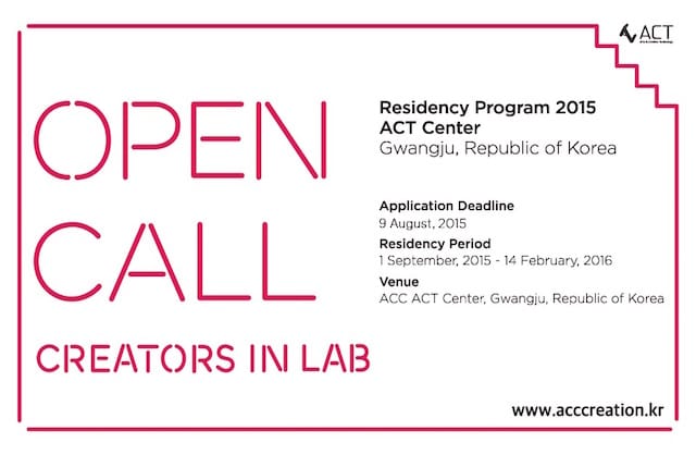 Hosted by the ACT Center in Gwangju, South Korea, "Creators in Lab" is a unique residency program for multidisciplinary professionals.[http://engine.nectarads.com/p/eyJhdiI6ODc3MjEsImF0IjoyMCwiYnQiOjAsImNtIjoyNzExODUsImNoIjoxOTMwLCJjciI6OTI2NjUxLCJkbSI6NCwiZmMiOjk3NDg0NiwiZmwiOjY0NTQ1MCwiaXAiOiI1NC4