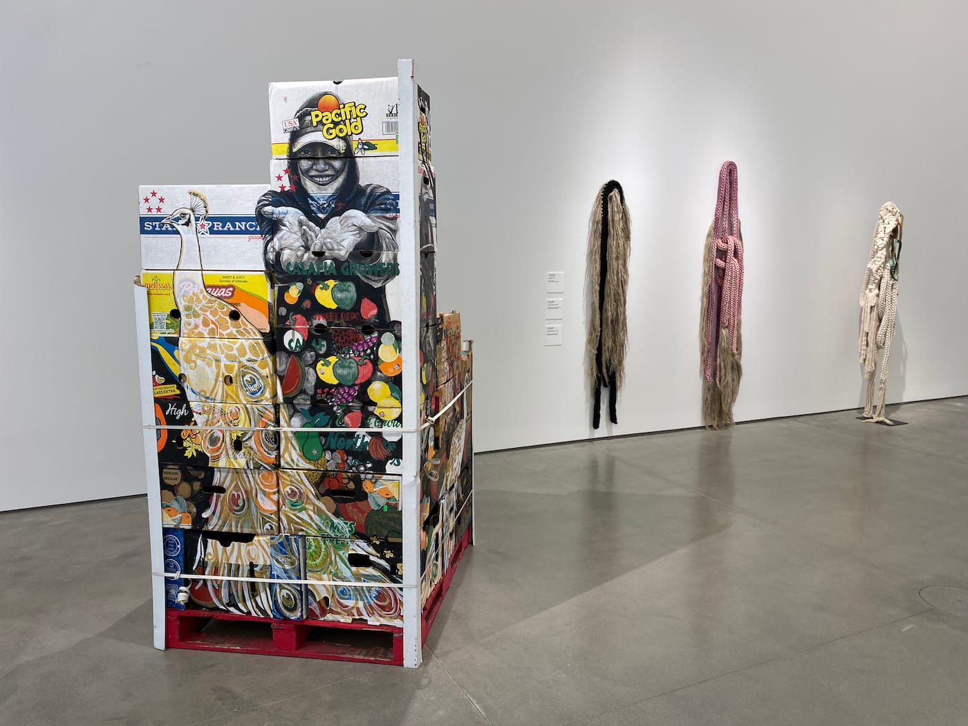 The highlight of the exhibition program is the rebooted California Biennial, which Zuckerman referred to as “the most important survey of California art.” Titled Pacific Gold — a name borrowed from a work by Narsiso Martinez featuring a stack of produce boxes onto which he has drawn a portrait of a farm worker — the show wrestles with the heterogeneous, contradictory, and unwieldy themes of life in the Golden State, emphasizing the gulf between the promise of prosperity and equality and realities.
