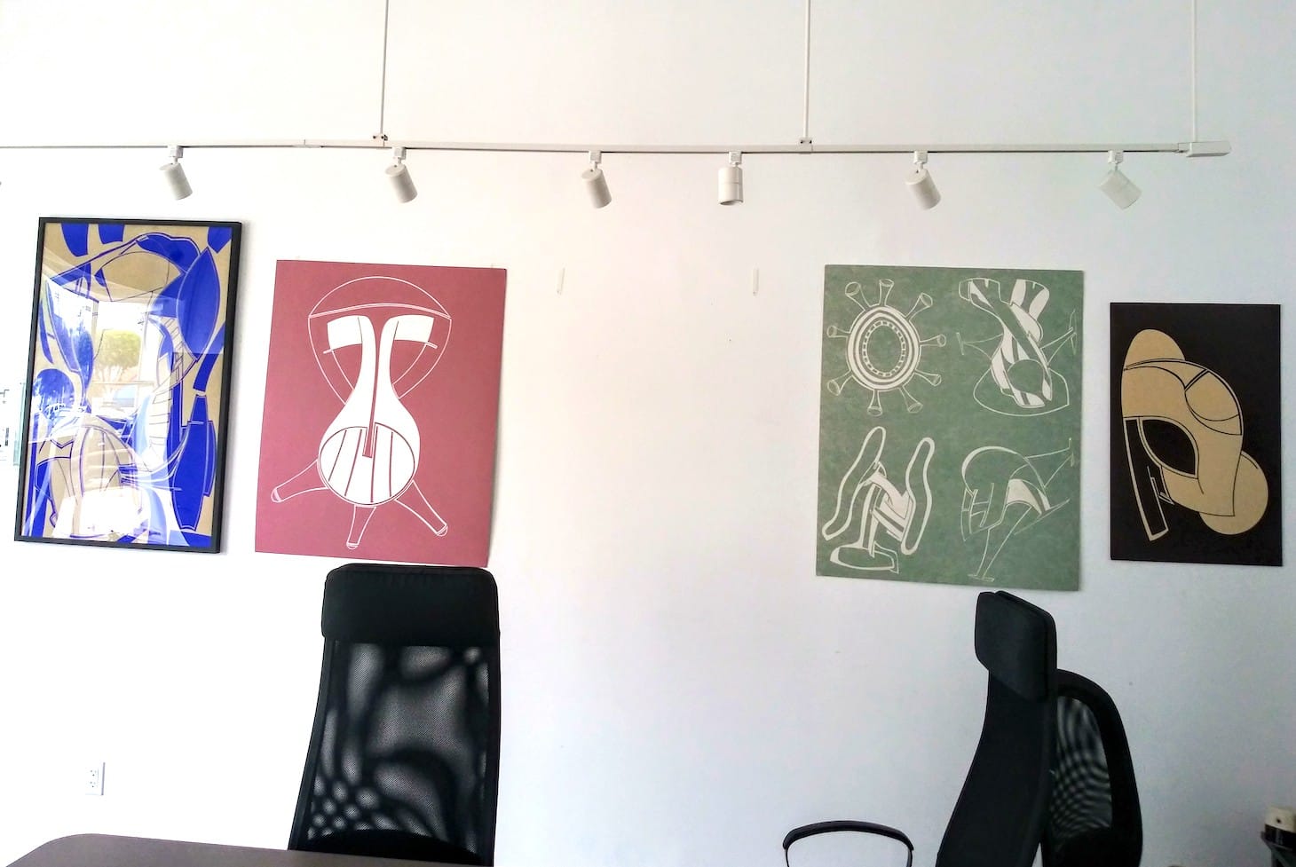In the Alcott’s art room, a series of minimal, futuristic works by an artist who goes by Amadeus hang on the wall. He makes these by cutting into colored boards with an X-Acto knife, designing the shapes intuitively, but working with precision. Some look like renderings of spaceships, others like abstracted musical instruments. When Amadeus, who has been making art for decades, lost his storage unit recently, the Alcott Center acquired a significant number of his artworks. They plan to frame a selection of them and sell them at the annual art sale, from which artists receive the profits. The center only works with clients who qualify for public assistance, and, as Development Manager Nate Collins explained, some have difficulty maintaining traditional jobs and their art-making provides them with a stream of income. In preparation for the art sale, the center enlists an appraiser familiar with both insider and outsider art to recommend price ranges for the works.