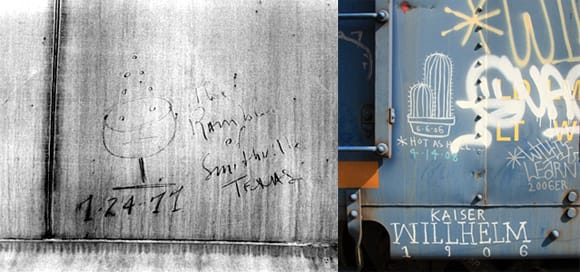 While it’s unclear when this all started, author Jack London does mention seeing these markings on trains in the 1890s. Despite the railroad industry’s claims that train hopping ended in the 1930’s, both train riding and boxcar art not only continue to exist today, but they just keep on getting more and more elaborate.
