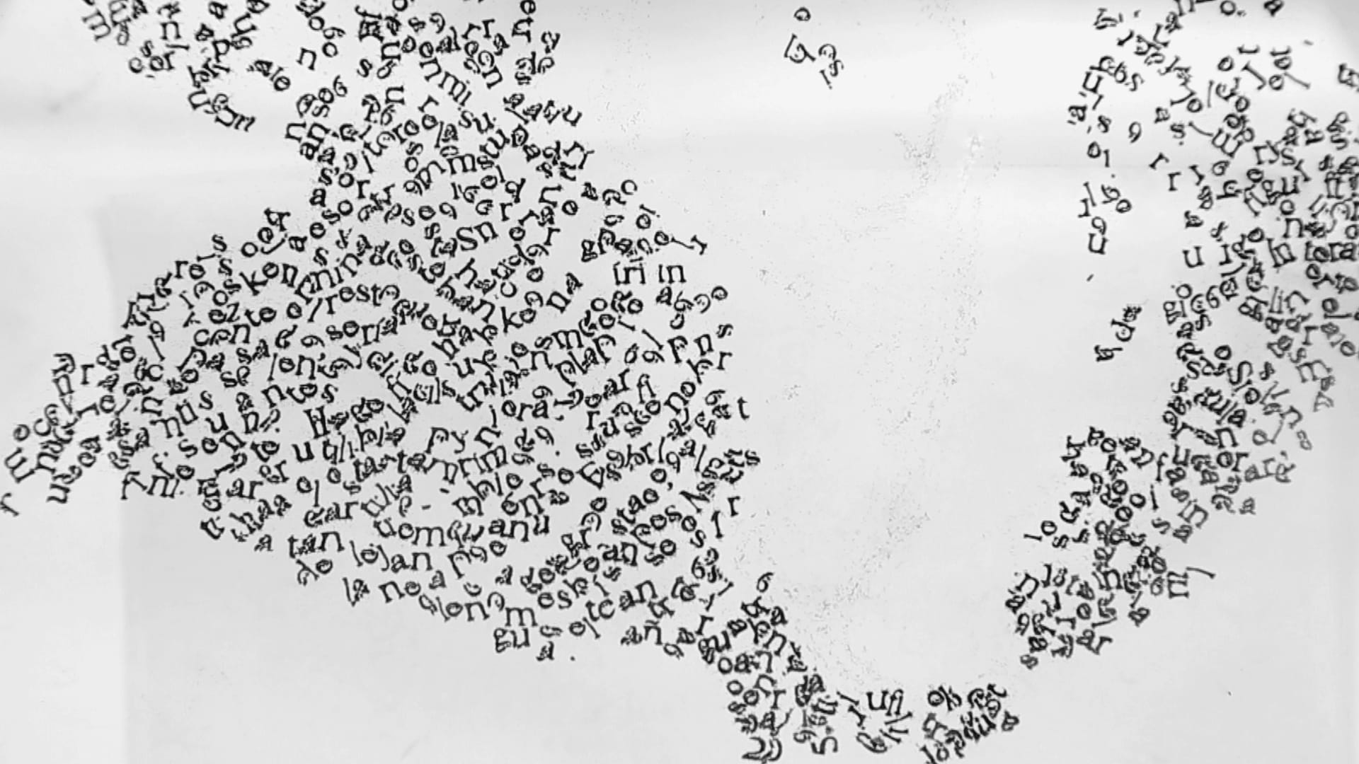 AUSTIN — Oscar Muñoz is very good at capturing the feeling of memory. His five-channel video installation Proyecto para un memorial (Project for a Memorial) (2005) captures the fleeting, fading sensation of trying to recall something that’s already in the past. In the piece, the artist paints a series of faces using a brush dipped in water on a hot cement surface. Just as he finishes one area of a portrait, the rest begins to evaporate. Muñoz’s hand returns to repeat his marks, only for them to disappear moments later. It’s unclear who these people are, but Muñoz’s process reminds us that we can never remember something without also seeing how much we forget.