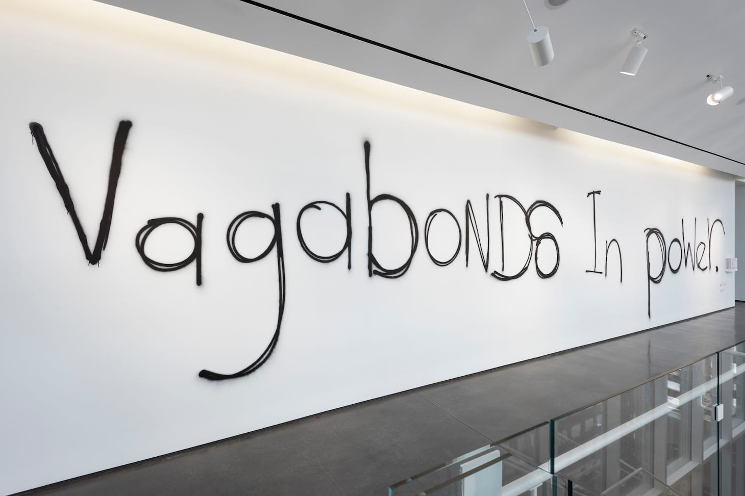 On the night of the exhibition’s opening, Murillo spray painted the phrase “Vagabonds In Power” on the gallery wall, calling out to Fela Kuti’s historical performance of his song “V.I.P.” at the 1978 Berlin Jazz Festival, where the musician critiqued the Nigerian ruling class. “Molue bus driver, him get him power,” Kuti calls out to the crowd in a neon green jumpsuit, “Over him bus and conductor everywhere.” In it, he critiques the Nigerian ruling class in the pidgin English he used to address individuals spanning the African continent. Again, borders are blurred. The gesture of referencing Kuti’s performance forms a line between Aspen and Berlin; Berlin and Lagos; the lines continue to be rendered.