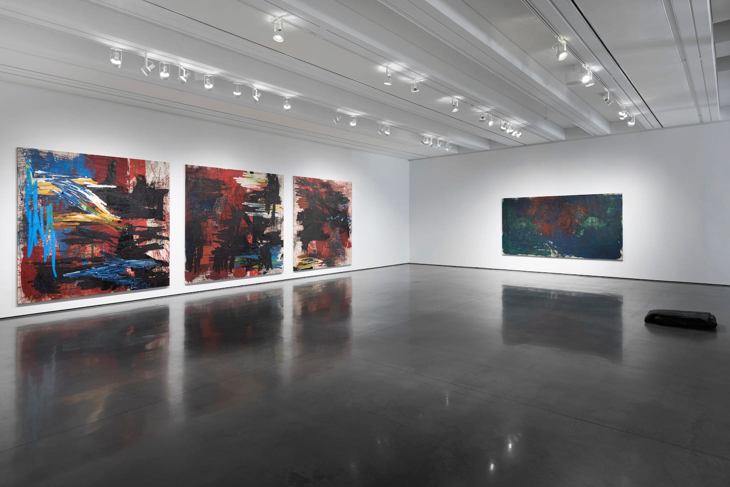 ASPEN, Colo. — When Oscar Murillo learned that Monet had cataracts while painting his Water Lilies, he began to think about the disability in a societal sense. “What would it be like if there were social cataracts,” he proposed in a talk at the Aspen Art Museum, “so you couldn’t really see the present?” Cataracts warp and blur; they create friction between the immediate world and one’s memory. The disabled must ultimately return to their primal instincts, which for the artist, means engaging in unconstrained acts of mark making. Murillo’s new exhibition, Social Altitude, which is currently on view at the Aspen Art Museum, showcases five recent series that obliquely speak to this question, using obfuscation and movement to examine the complex conditions of a globalized world. The work explores structures of globalization and cultural production through gestures of materiality.