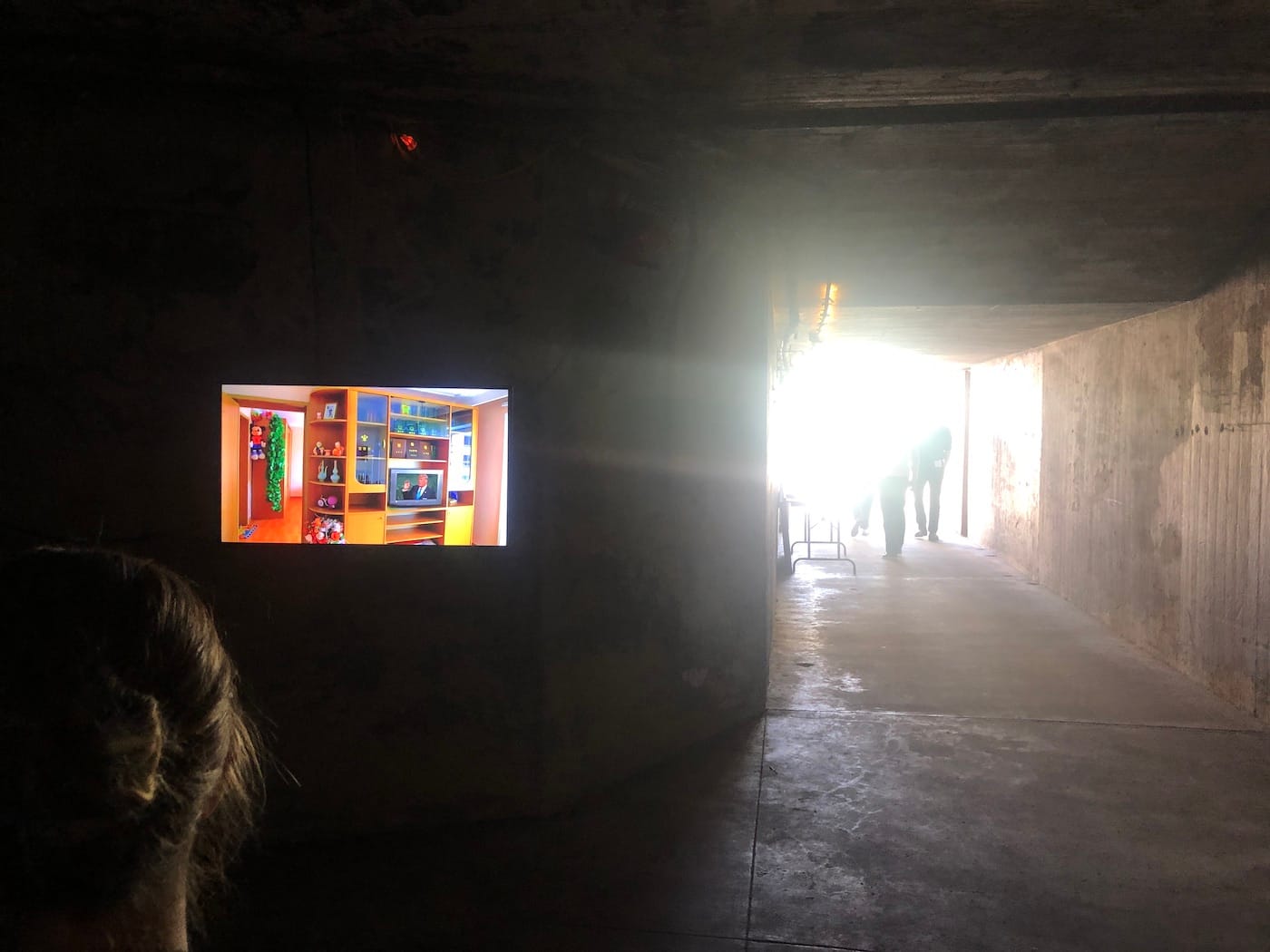 Halfway across the fair, Public Pool gallery, a “floating gallery in the San Fernando valley” known for its exhibitions in and around a residential pool, hosted a hauntingly listless computer-narrated video by Michael Becker in a small inflatable boat parked on land, bringing their pool toys ashore for the day. Other venues decided to play with nuances of the existing architecture, such as Hunter Shaw Fine Art’s group painting exhibition, which included works hung within a cave-like concrete structure carved into the grounds’ landscape.