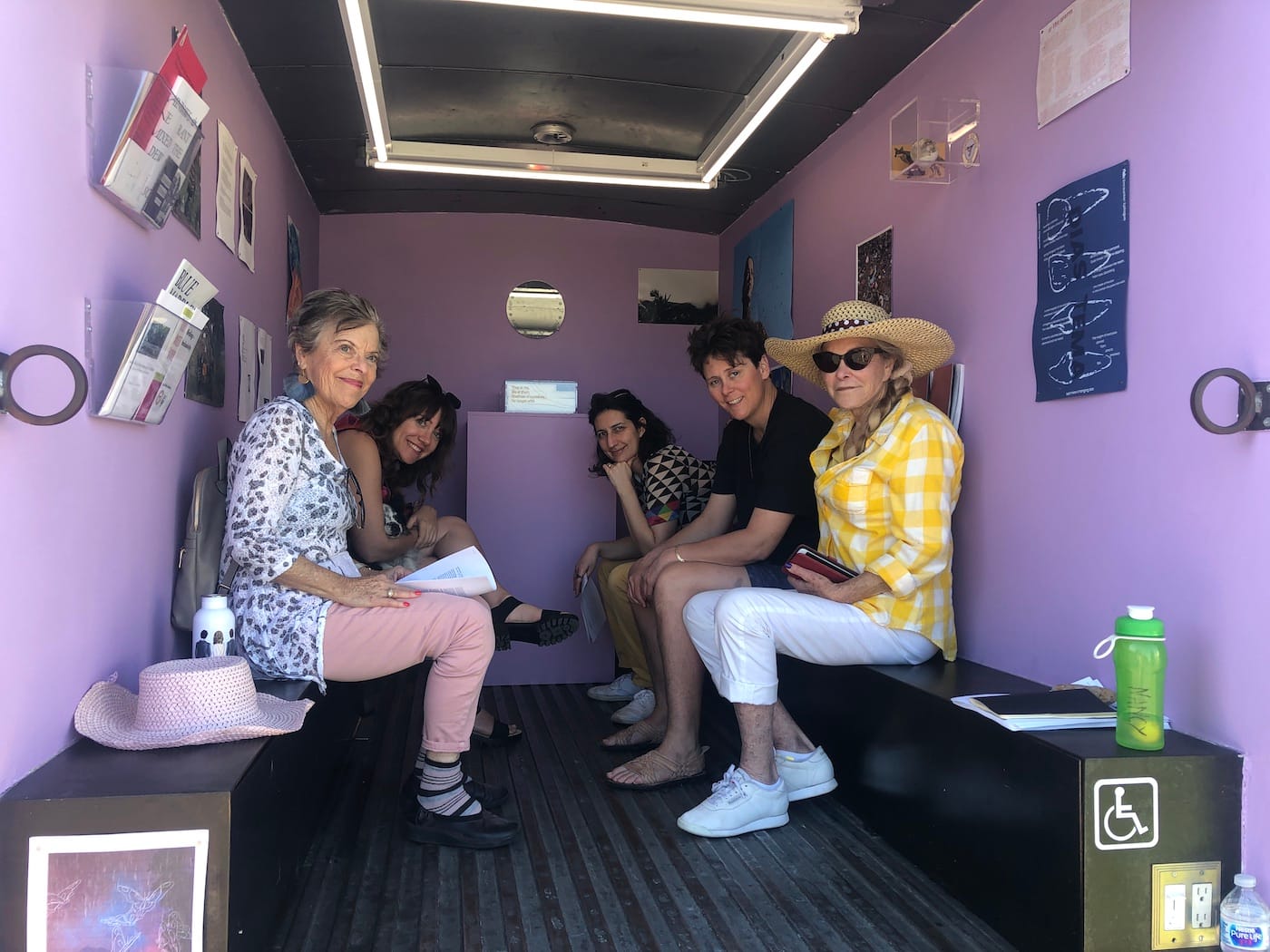 Other spaces arrived in San Pedro unchanged by the surroundings — Gas gallery, for instance, located in a converted step truck, is mobile by nature. Currently on view is Common Survival, curated by the Institute of Queer Ecology, which “aims to nurture a new environmental paradigm based on the concepts of interconnectivity and inseparability.” Sitting in the gallery, discussing related topics with a group of intergenerational women on benches lining both sides of the gallery, this aim felt particularly suited to the small space, in which our bodies felt close and linked.