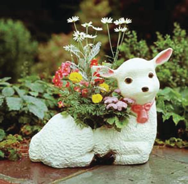 Aside from the birds, Featherstone also fashioned elephants into darling watering cans; introduced dinosaurs, pilgrims, and witches into the canon of lawn decor; and got into the spirit of Christmas with elves and smiley Santas.