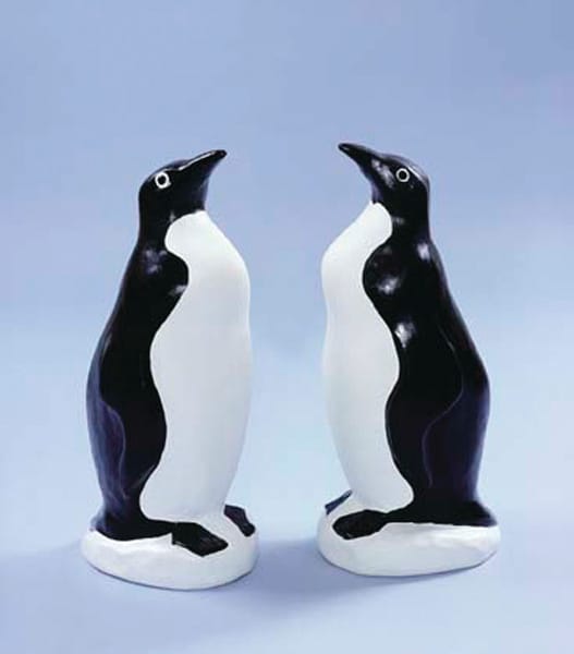 Among his creations are more feathered friends (perhaps a personal salute to his name), from pheasants and roosters to pelicans and graceful swans that double as planters, showing his consideration of function in addition form. Also available: a pair of comically wide-eyed penguins gazing skyward, making for fun winter decorations or cheesy punchlines in the tropics. Featherstone’s first assignment was actually to sculpt a duck; he purchased a living one as a model, named it “Charlie,” and kept it in his sink. He couldn’t repeat the process for his next assignment — the (in)famous flamingo — so he drew inspiration instead from vivid photographs that accompanied National Geographic‘s October 1957 cover story. That bird became his masterpiece and even carries his signature on its rump, but Featherstone’s ostrich was apparently his favorite fowl.