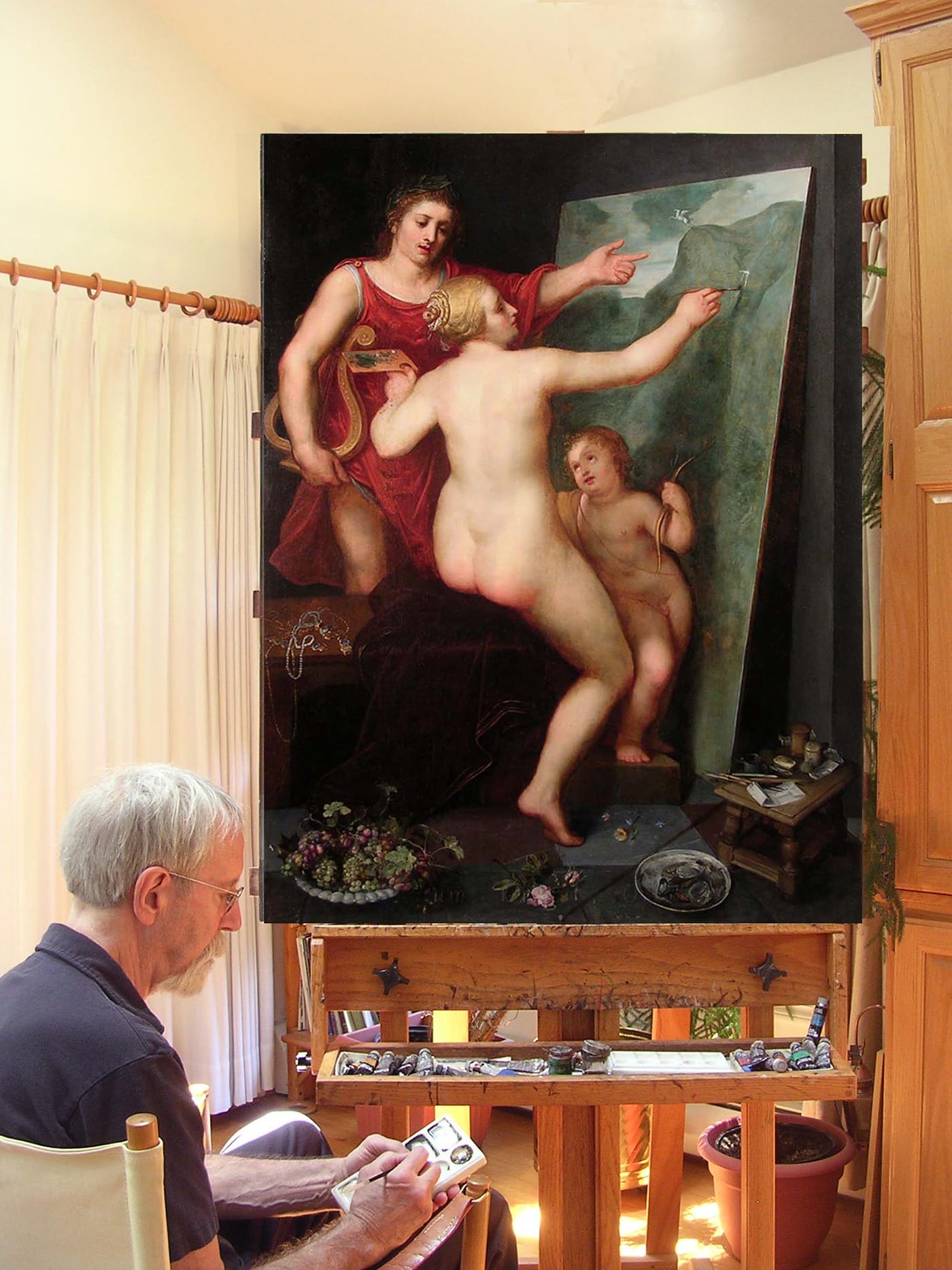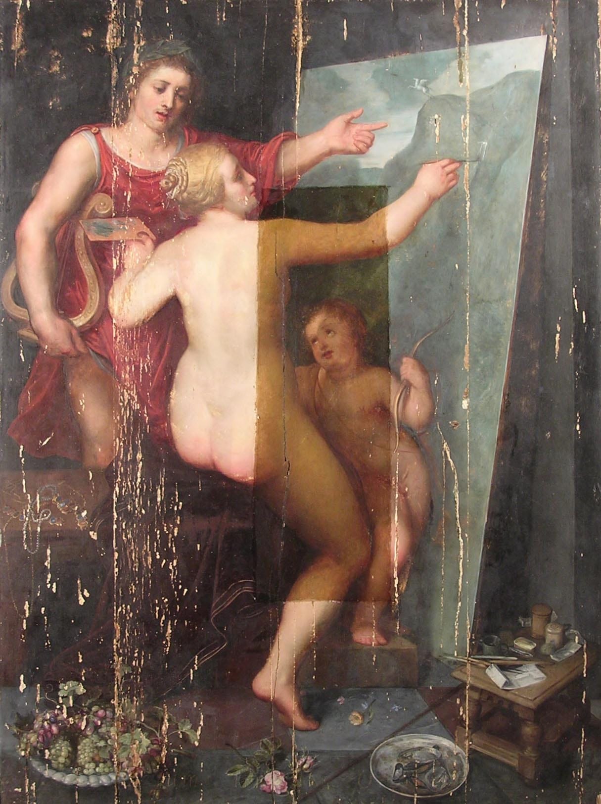 “There was an inscription you could see on the bottom of the uncleaned version, through X-rays, Warren said. “We thought it was going to be the artist’s signature, but in fact it’s a Latin quote — which was one of Otto van Veen’s signatures.” Another signature detail, ironically, was the approach to nudity that Warren suspects kept the painting from being hung. Ruebens experts told him that they could trace the painting to van Veen based on sketches the artist had created. “Their signature trademark of van Veen was the rosy cheeks on the model,” Warren said. “And not the cheeks on the face.”