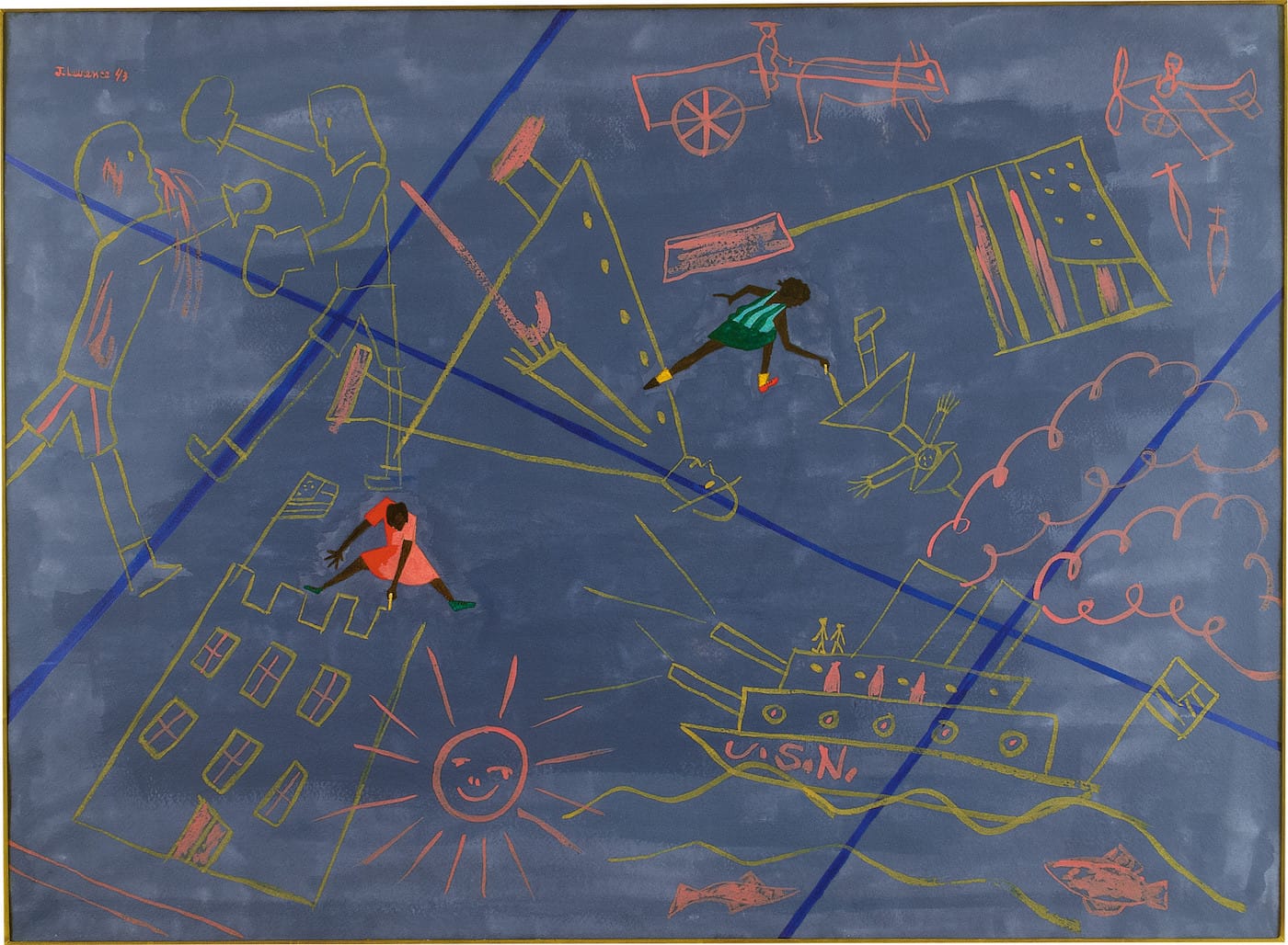 Although this show is as well-intended as it can be — trying to batter down the barriers between those whom Cooke prefers to describe as “outliers” and the truly American vanguard artists — it inevitably seems to give a kind of “slap-on-the-back” appreciation for those who often felt no need to be appreciated since they simply went about creating art without any institutional approval. Inherent in this show is still a kind of subtle hierarchy, even if Cooke has tried to delimit its force. And if the differences between the two become rightfully blurred, her insistence on art history confuses us. Was Marsden Hartley, the well-trained artist who early on painted beautifully abstract works of German soldiers and their medals, and later drew on Native American imagery, truly influenced by the “outliers” when he gave all that up to paint lovely, sometimes crudely homoerotic pictures of his Maine friends? Was Jacob Lawrence, a hero in the black community, a naïf painter because he drew children painting on a sidewalk? If trained artists grew to love folk and craft art, perhaps it was not because they simply discovered it from outliers, but because it accorded with their own world views.