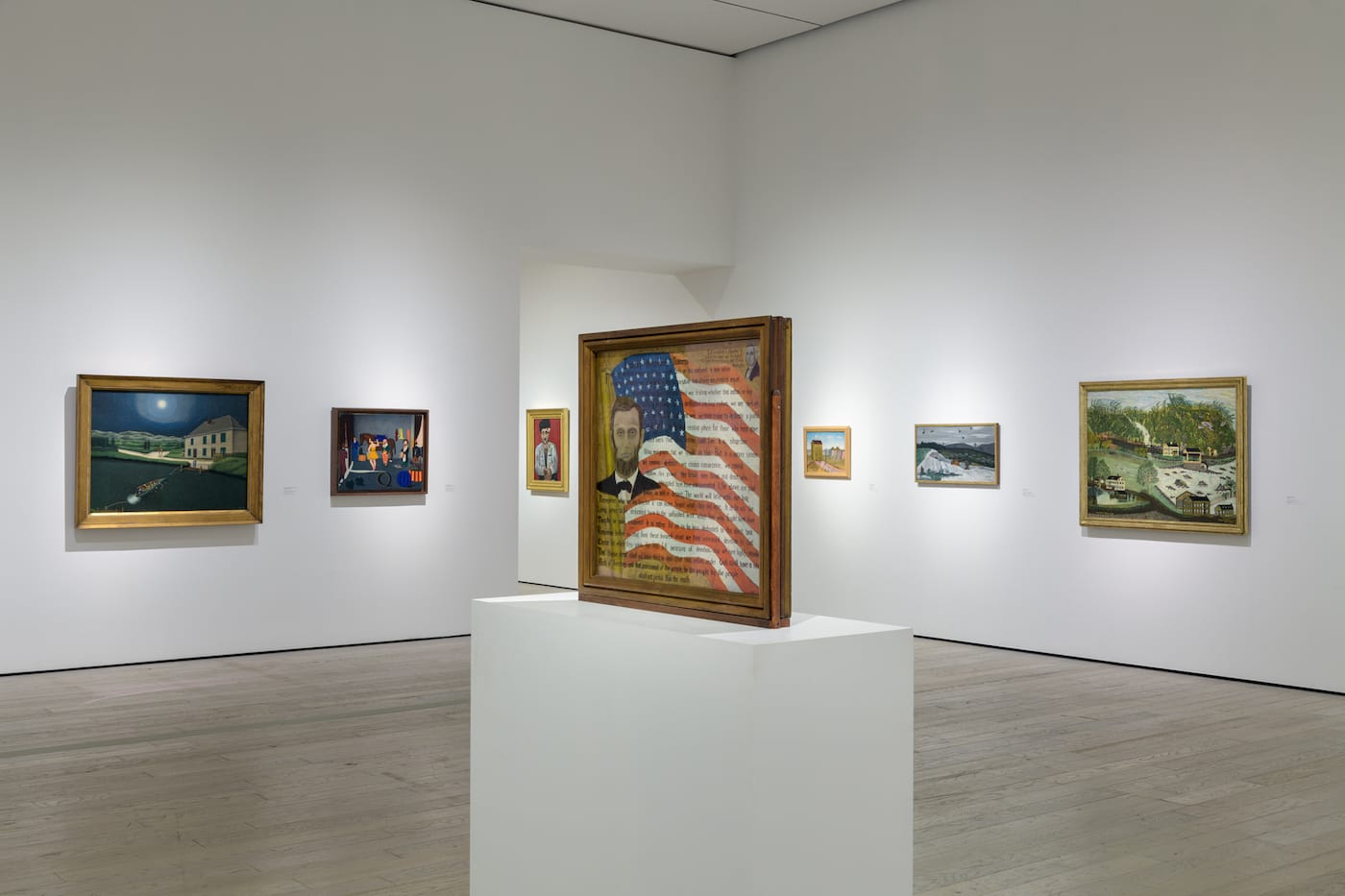 Outliers cites the 1924 Whitney Studio Club (now the Whitney Museum of American Art), whose artist collectors included modernist painters such as Charles Sheeler and Yasuo Kuniyoshi. Moving into the 1930s, we learn of the private collections of artists such as Elie Nadelman, and of the founding director of New York’s Museum of Modern Art, Alfred Barr, who in the 1930s hung European artists (Henri Rousseau was one of his favorites, three of whose paintings grace these walls) and Americans who refused to differentiate between what came to be called “outsider” art from the experimentation of the day.