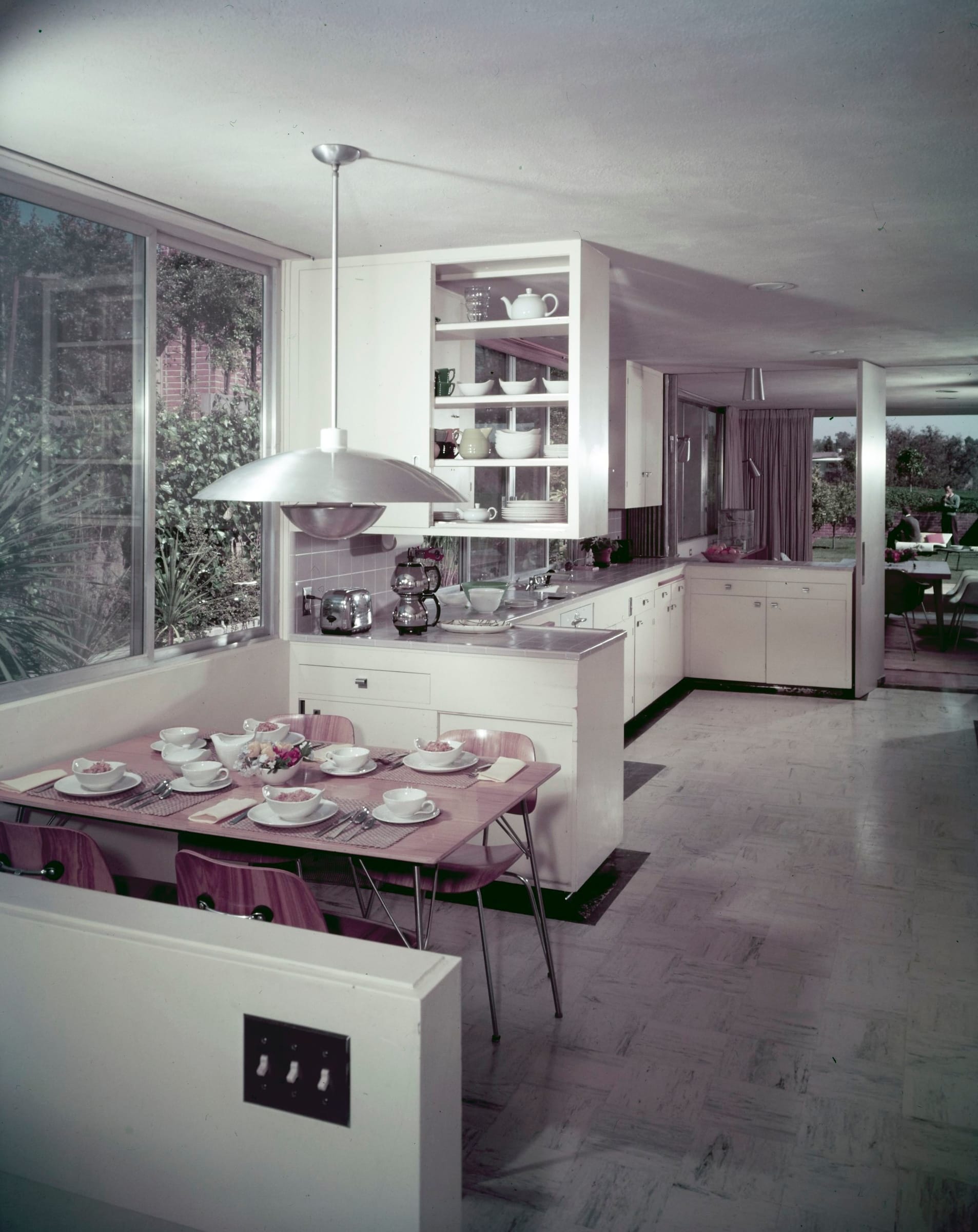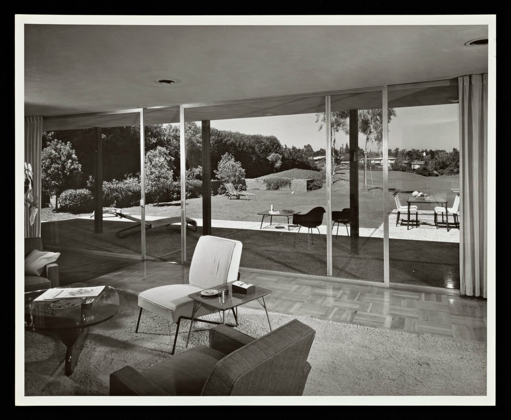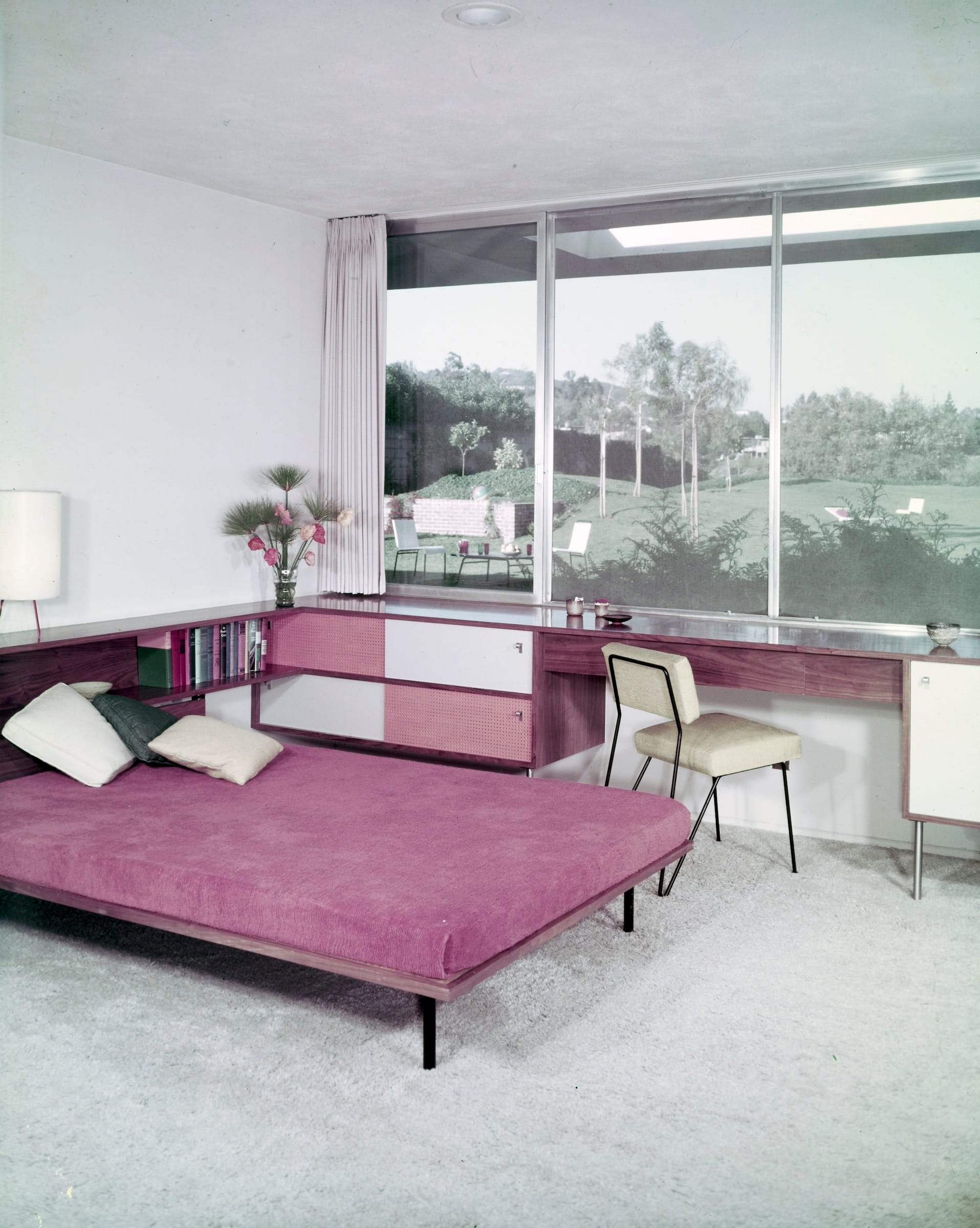 Constructed in 1950, the Zimmerman House was a prime example of the cool, clean California modernism pioneered by Ellwood and fellow architects including Richard Neutra, Pierre Koenig, and Charles and Ray Eames. The low-slung, 2,770-square-foot five-bedroom home was characterized by light and openness, with a central brick fireplace and large sliding glass doors that opened onto a backyard designed by famed landscape architect Garrett Eckbo, which was also destroyed.