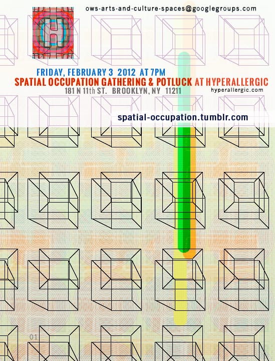 Yesterday, the Occupy Wall Street Arts & Culture Working Group, facilitated by the Space Team, began a 2-mo residency at Hyperallergic HQ in Williamsburg. The first activity will be a potluck event that takes place tomorrow, Friday, February 3.