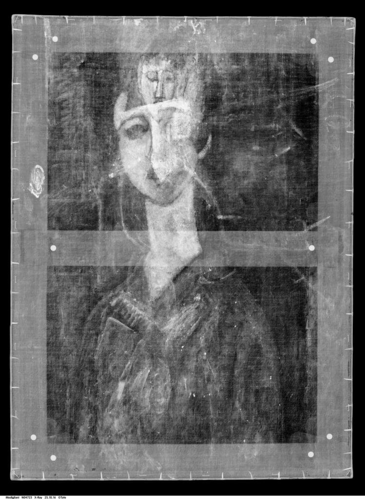 X-ray image of Modigliani's "Portrait of a Girl" (1917) (photo by Mark Heathcote and Abbie Soanes/Tate Photography)