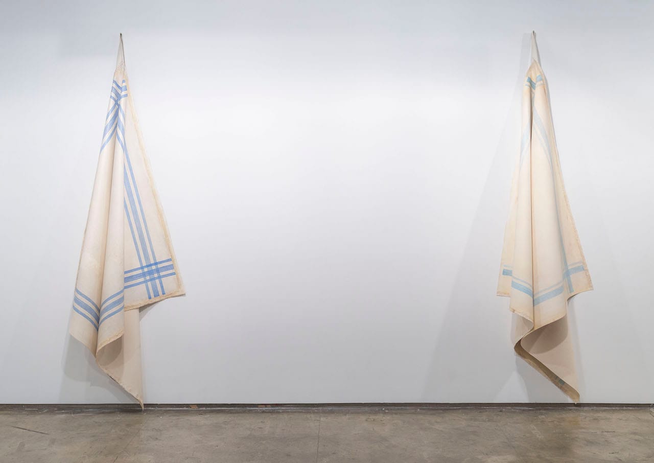 The show intervenes not by way of content (as has been the case with many of del Rivero’s other series, [Swi:t] Home included) but through form, specifically the conventions of painting: by making dirt into paint, paint into stitches, and canvas into a majestic hanging fabric, the artist creates a new formal register for paintings as material. Del Rivero turns a painting into a three-dimensional object, and in so doing makes a claim for craft as fine art and fine art as a work of craft arising from within the domestic, feminized space of the kitchen.