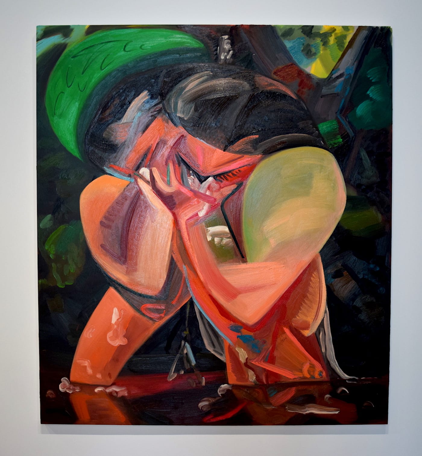 Her own painting “Shame” looks like an homage to Soutine — a lively pictorial symbolism — made with an utterly contemporary painterly shorthand. It also represents that pursuit to use the entire swirl of the composition to bring us into its world.