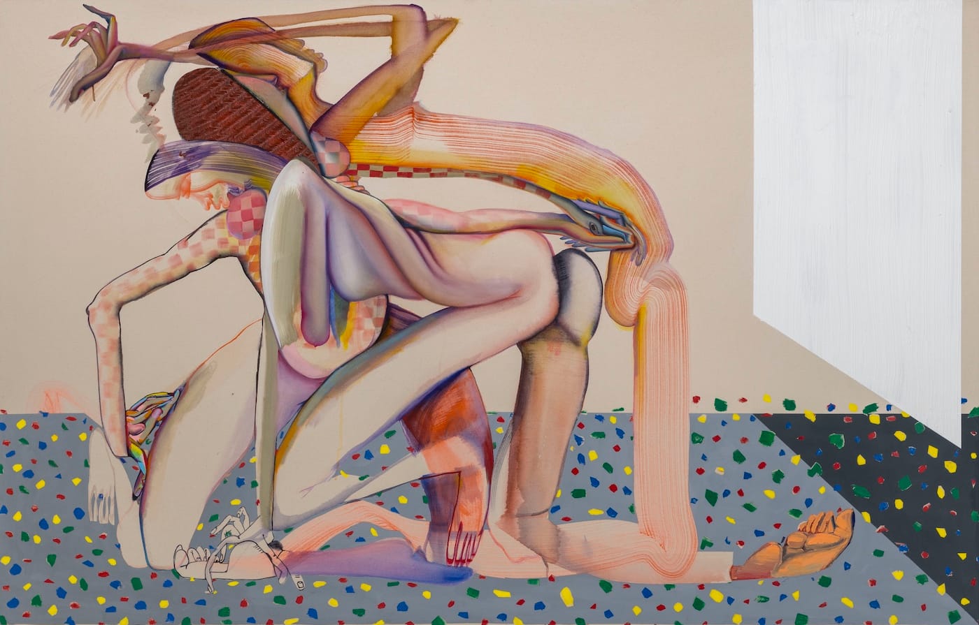 Alan Davie and David Hockney: Early Works at the Hepworth sets paintings by that unknown young man called Hockney beside some of those works by Davie that he would have seen then. Adjacent galleries bring us right up to the present. Christina Quarles is a young painter from Los Angeles who saw Hockneys in her hometown at different times in her life, and she is showing a series of paintings of images of bodies, part hand-crafted, part digitally manipulated.