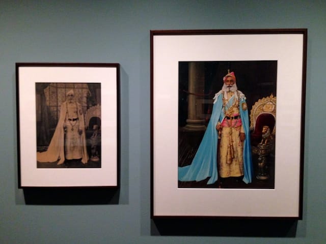 Walk the exhibit, however, and it becomes quite clear that the India section is the real fulcrum of the show, accounting for over half of the photos. Moreover, India was host to number of locally-owned and operated studios, plying portraiture to an interested middle-class as well as royalty. Regional styles emerged, particularly in the realm of painted photography, which drew its motifs from established Indian paintings styles, such as those of the Mughal and Rajput dynasty schools.