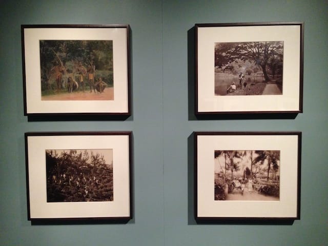 More than in any other region, Indian photographs are marked by the distinctive use of painted imagery. One photograph curiously limns a meta-portrait of a woman painting a portrait. It is in these painted photos that the vitality of the show’s proposed poles can be appreciated. At least in these example, the taking of a photograph was just the first step in a popular process of regional assimilation and cultural imposition. Photography, a technology imported and imposed from the west, was being cut and claimed with color.