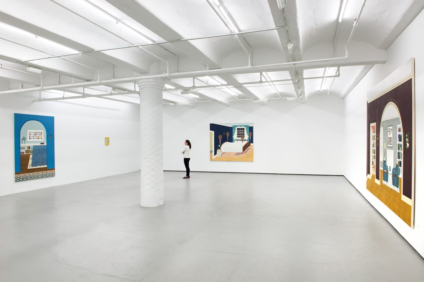 Becky Suss's paintings at Jack Shainman Gallery boldly usher the quiet comforts of home into the white-walled space.