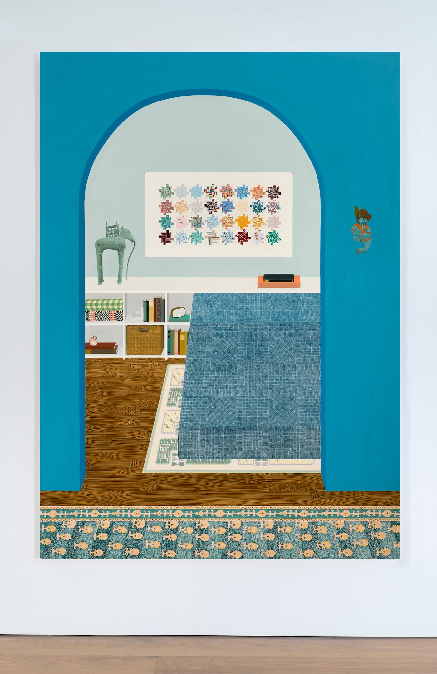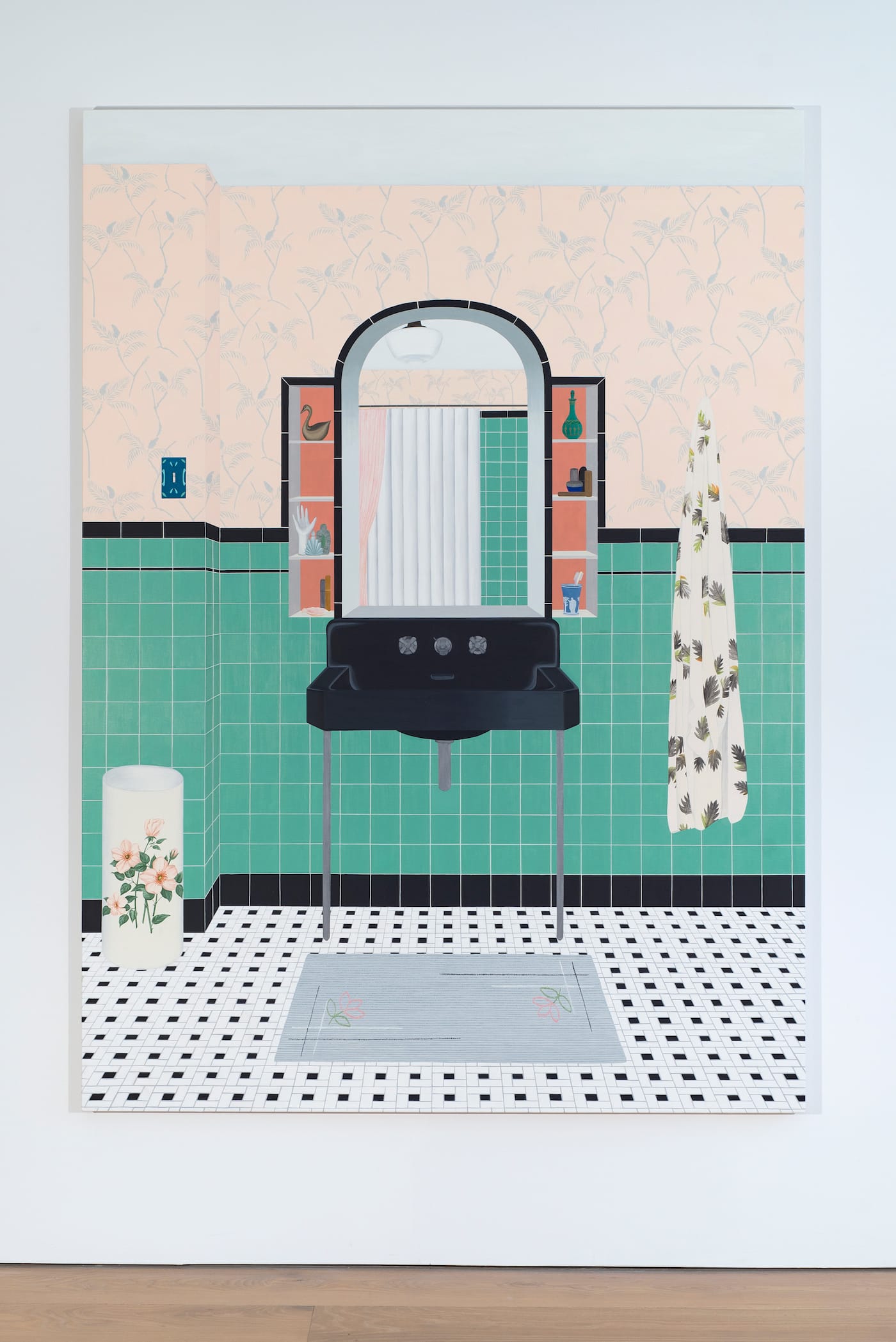Becky Suss's paintings at Jack Shainman Gallery boldly usher the quiet comforts of home into the white-walled space.