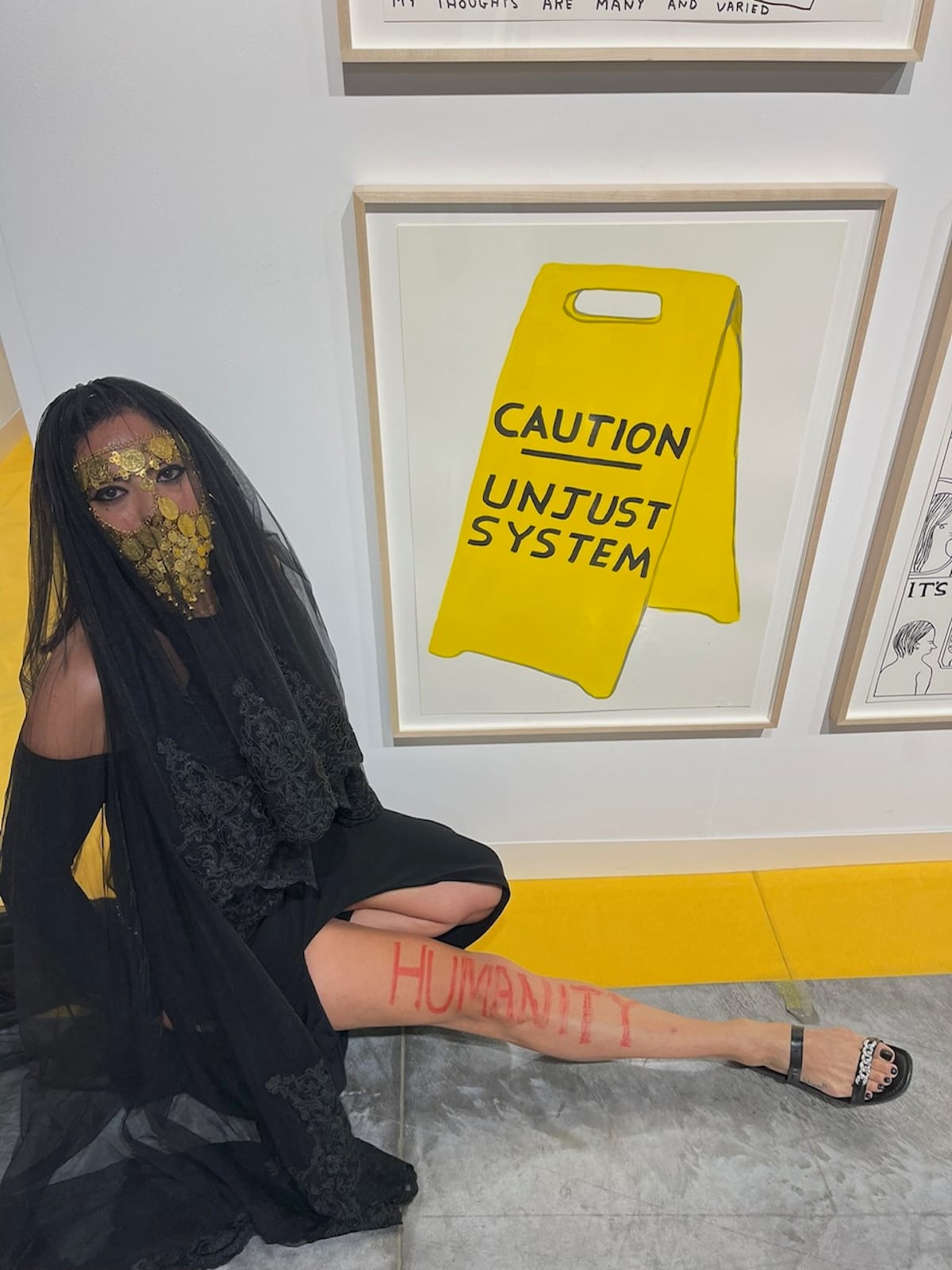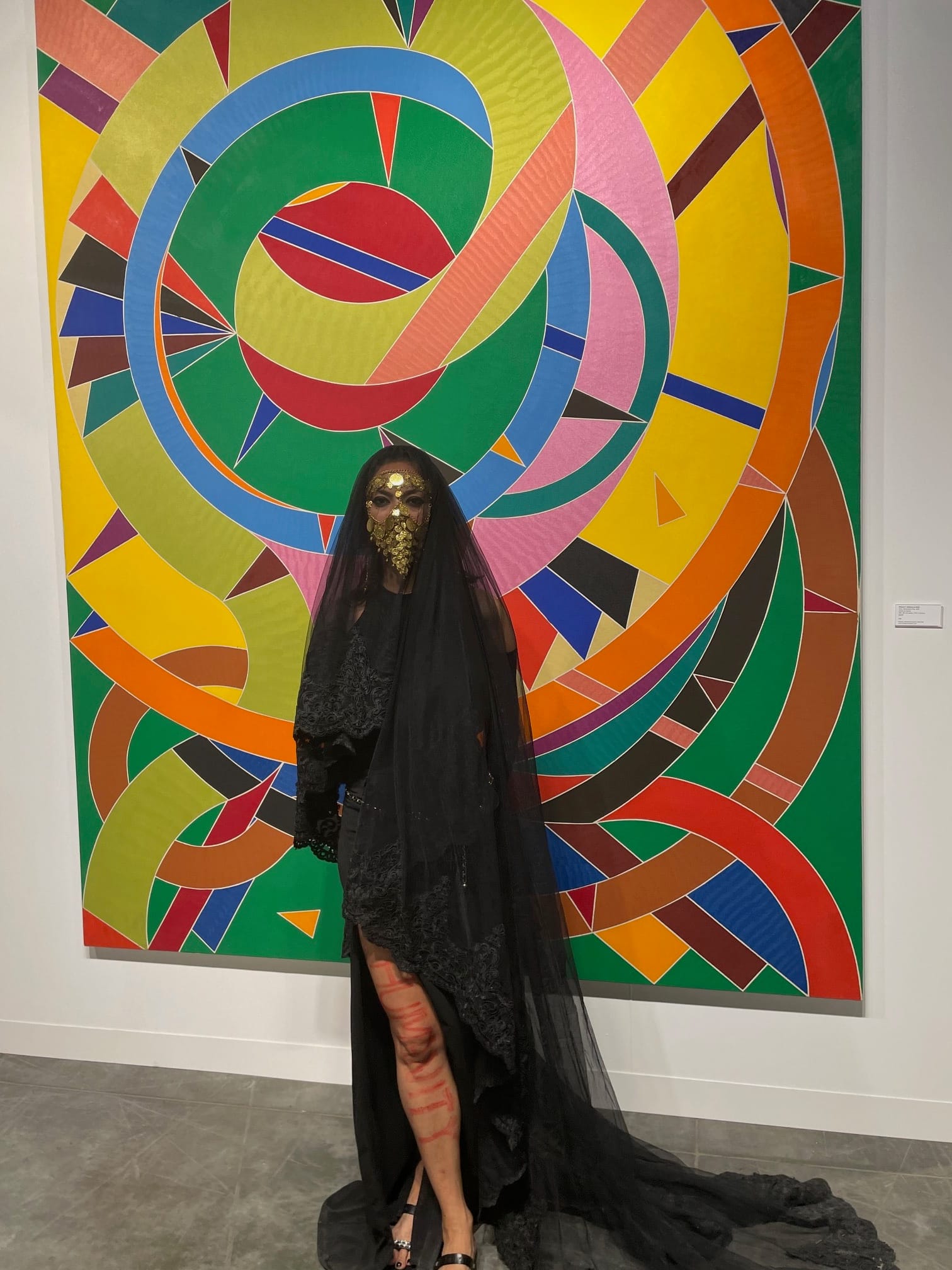 Art advisor and artist Samera Abed told Hyperallergic that she had been walking around the fair, housed inside the Miami Beach Convention Center, for over five hours when she was approached by a member of the show's security team. The guard instructed her to remove both the sheer veil she was wearing over her face and hair and the gold-beaded jewelry adorning her nose, mouth, and forehead. When she told the security guard that she would prefer to leave the fair, he allegedly replied that if she did not remove the accessories immediately she would be escorted out of the premises.