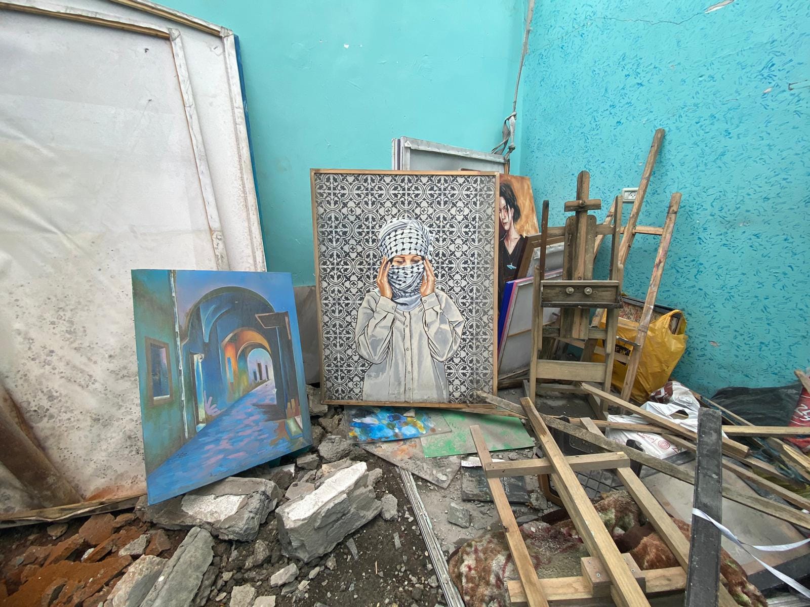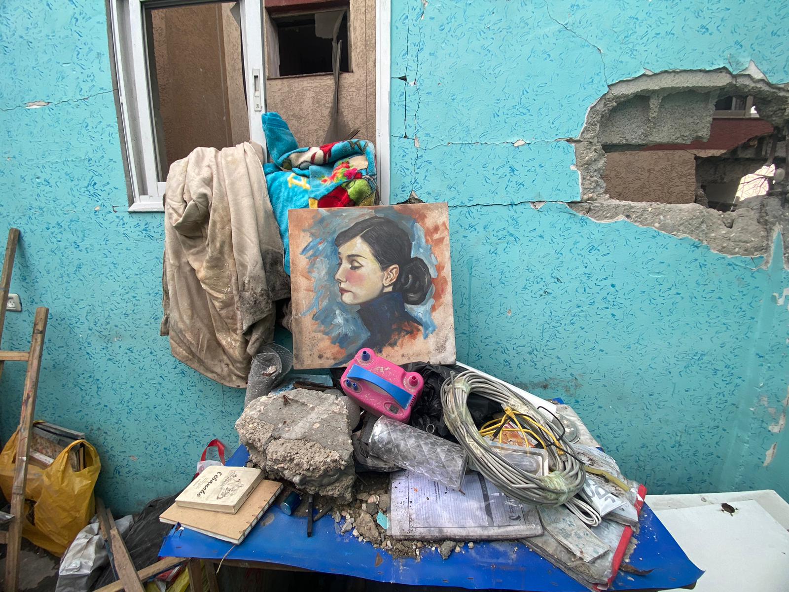 In his final Instagram post on February 28, Qreiqea shared photos of himself with his damaged artwork amid the rubble of his studio, reflecting on the saying, "Hope is not killed until the soul dies."