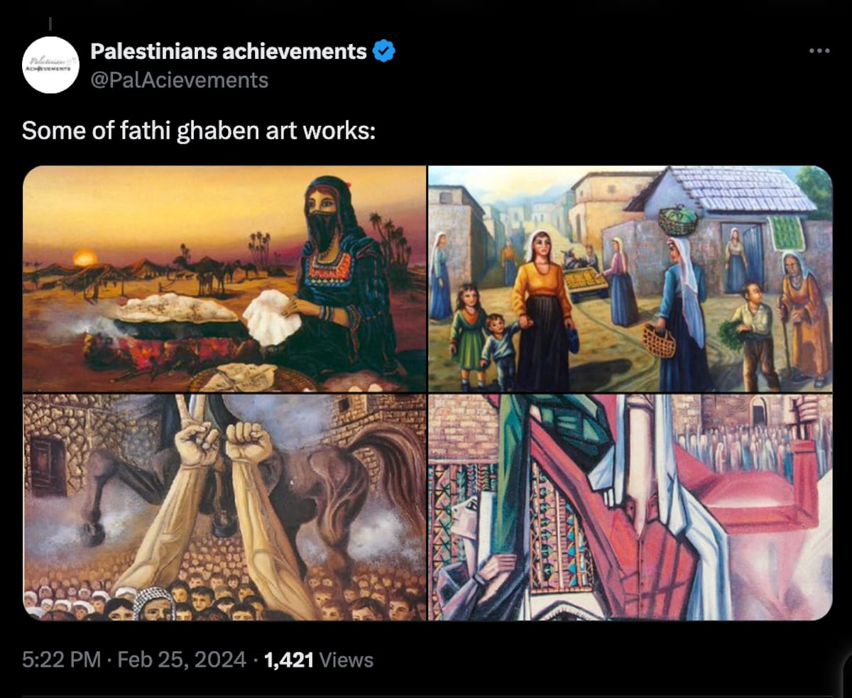 Many Palestinian artists and cultural organizations have taken to social media to mourn the loss of Ghaben and remember his legacy through his paintings.