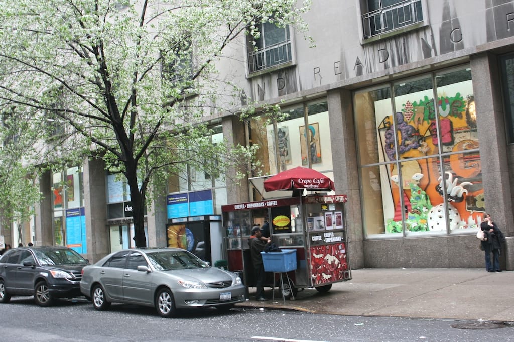 It’s easy to come upon Pantheon accidentally, as many of the visitors I observed had. In the middle of a tree-lined, vaguely historical block next to the most august institution of modern art in the world, the exhibition puts an un-ignorable splash of color into the urban environment. The funny thing is, though, that street art is about as divorced from the street as it is possible to be without being wholly indoors. Behind plate glass windows, the works selected for exhibition are pinned to a blank background that’s more well-branded middle school poster board than DIY history rewrite. The art looks artificial behind the glass windows and fails to embrace its natural context, on the street itself. Could this exhibition have been done through wheatpastes? Installed guerrilla-style in some (not-underground) alley? While it’s great to see more curators looking through the history of street art, I wish this exhibition felt like it had more street cred.
