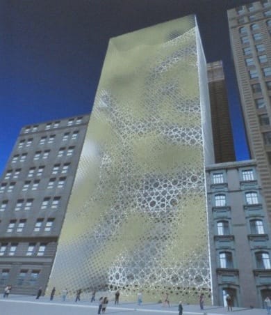 So much for visual literacy. The designers of Park51 note that the design of the façade stems from traditional Islamic forms that have been abstracted, keeping pace in an artistic system in which figurative representation is the opposite of the norm. It’s also important to note that no one’s really sure what the current status of the building is: multiple renderings are floating around the internet, and with the publicity storm, it’s still unclear whether the structure will be built.