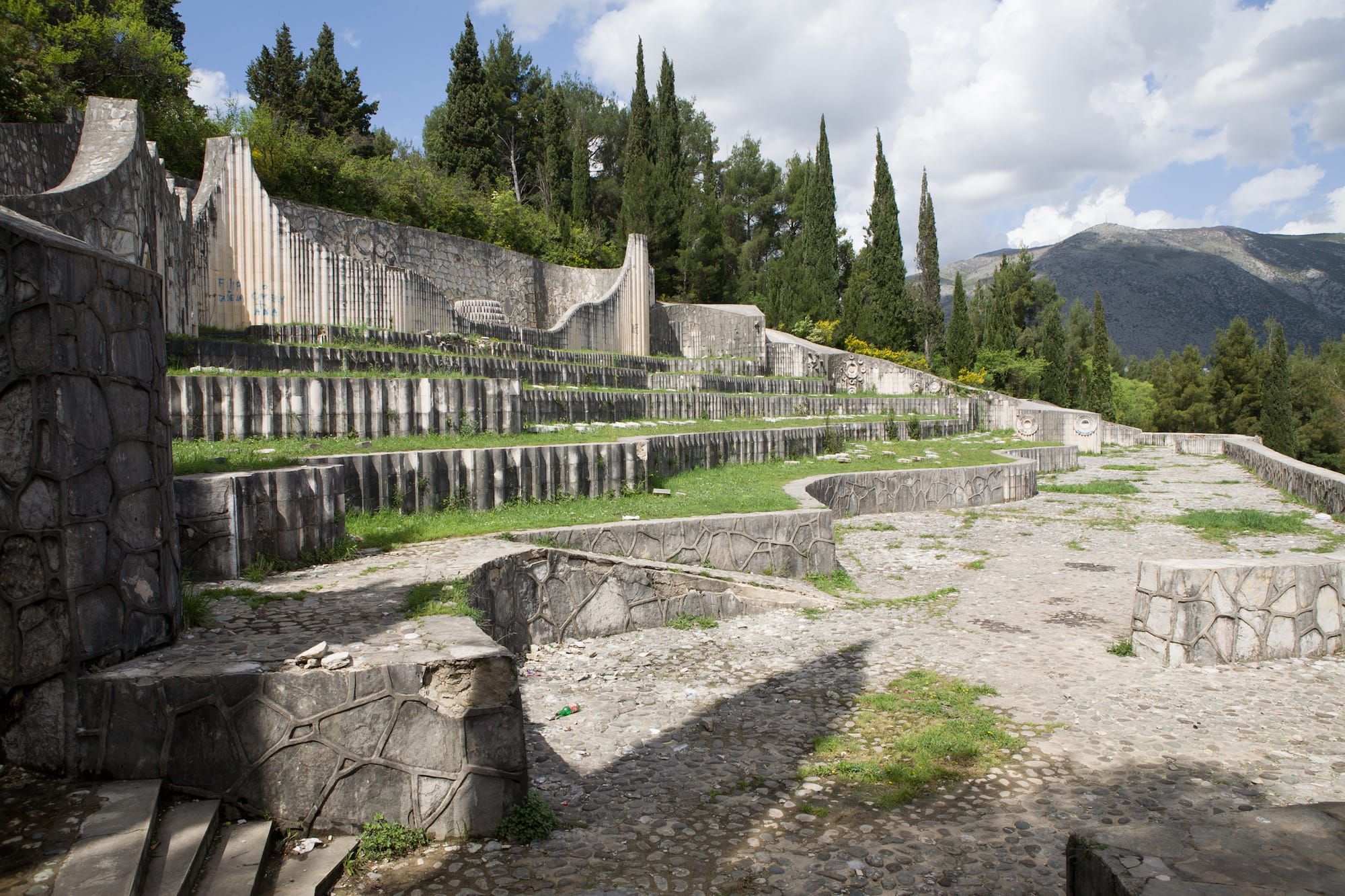 The Partisan Memorial Cemetery, built between 1959 and 1965 by Serbian and Yugoslav architect Bogdan Bogdanović, is one of the crown jewels of Mostar in Bosnia and Herzegovina, a city of over 100,000 people. The site is dedicated to the memory of those who died fighting as Yugoslav Partisans against the Independent State of Croatia, a puppet state of Nazi Germany and Fascist Italy. The Partisans, led by Josip Broz Tito, united as a multiethnic coalition whose legacy today is leading the most effective anti-fascist resistance campaign against Axis powers during World War II and founding the Yugoslavian nation.