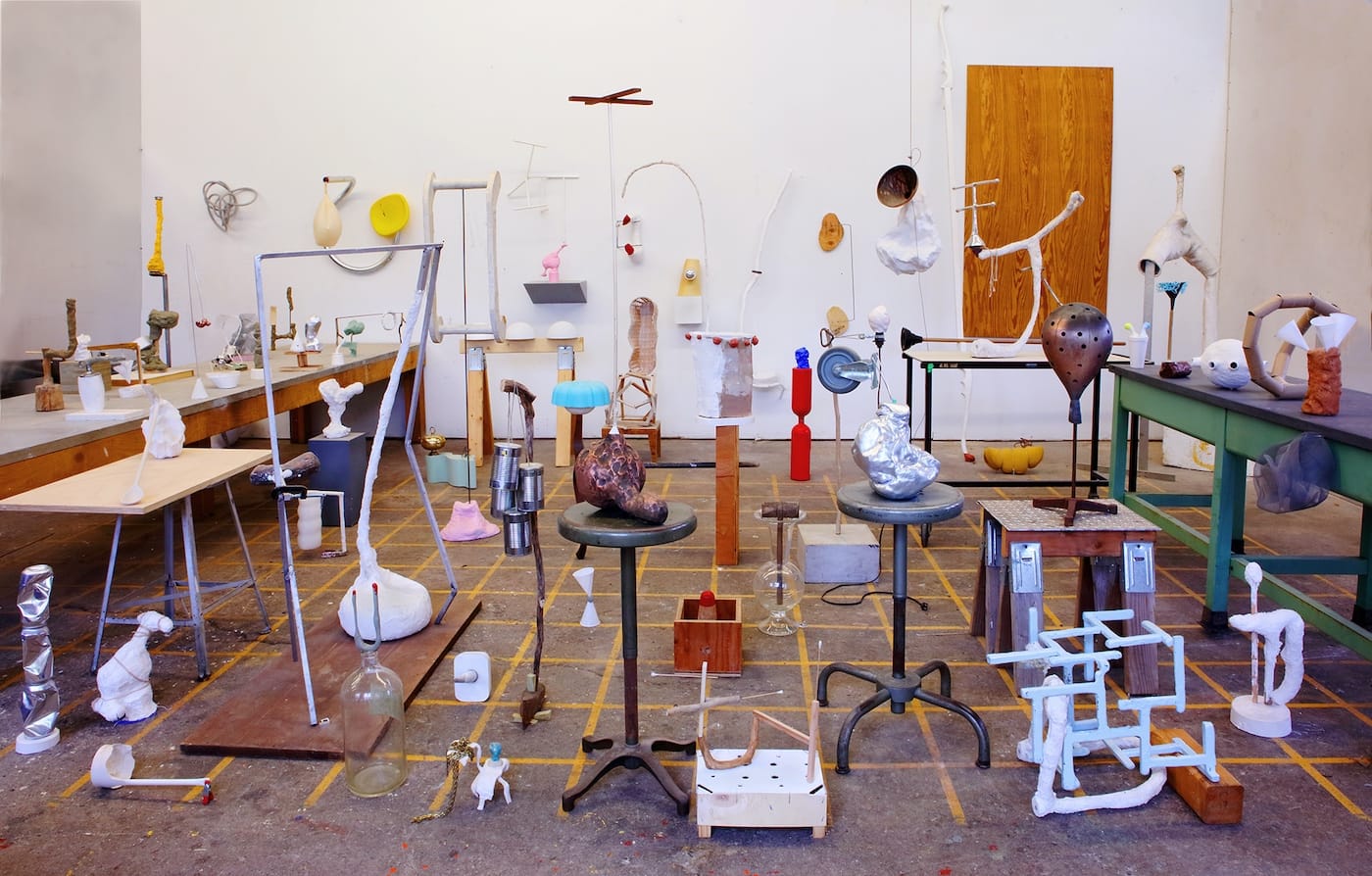 One of the things I have always liked about Patrick Strzelec’s sculpture is his kitchen sink approach. In 2013, when I first wrote about his work, I pointed out that he “seems not to be attached to a particular material, making his work out of plaster, aluminum, epoxy, steel, ceramic, wood and/or copper.” That adaptability seems particularly useful in our current situation.