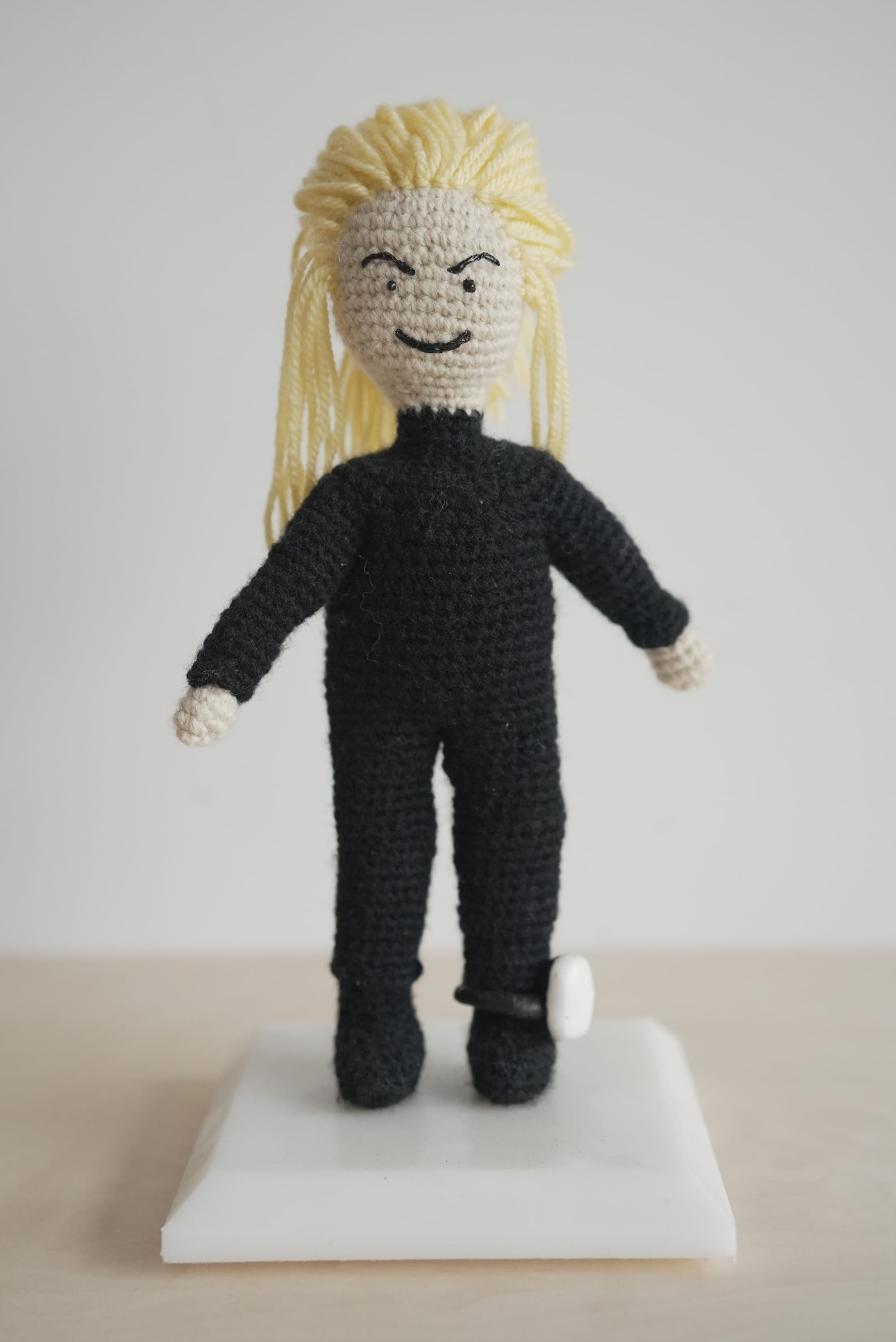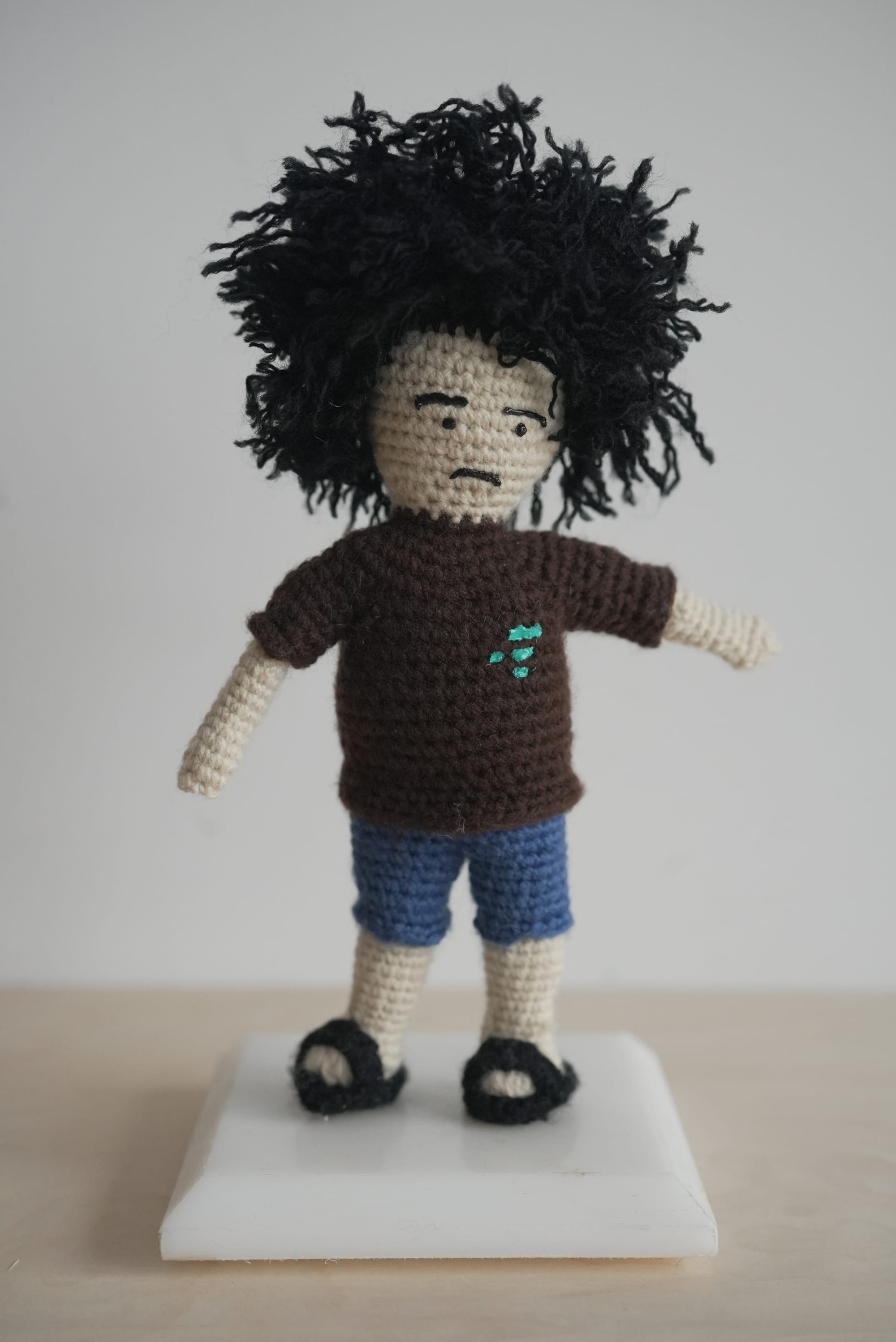 Chan's turn toward crocheted doll-making shouldn't come as too much of a surprise, given his unpredictably eclectic body of work, which ranges from erotica publisher to AI self-portrait-maker. Chan attributes his taste for the difficult, esoteric, and philosophically bristly to his mother: “It’s a reflection of her anarchic spirit.” When I asked about their relationship, his response was, much like the series itself, alternately hilarious and sincere: “She hasn’t disowned me yet, so I’d say we’re good. I owe her my life. She’s relieved I’m not in jail.”