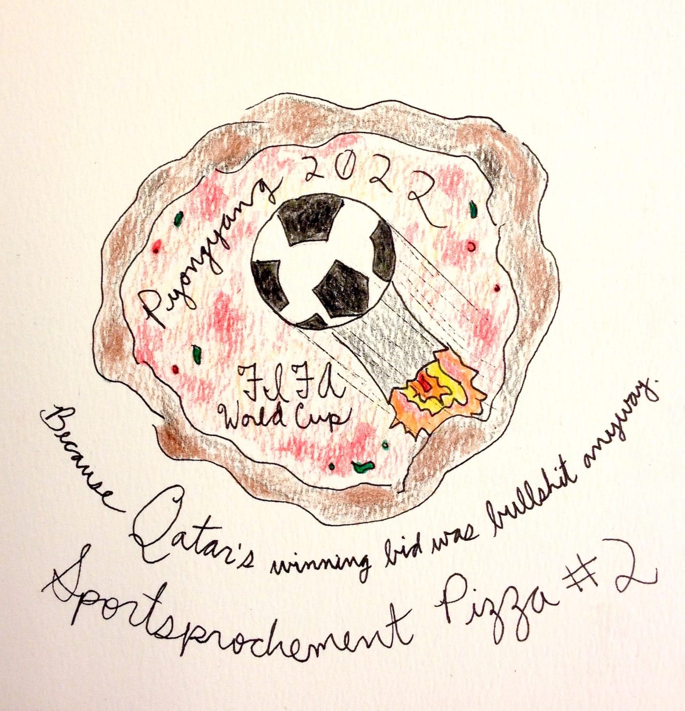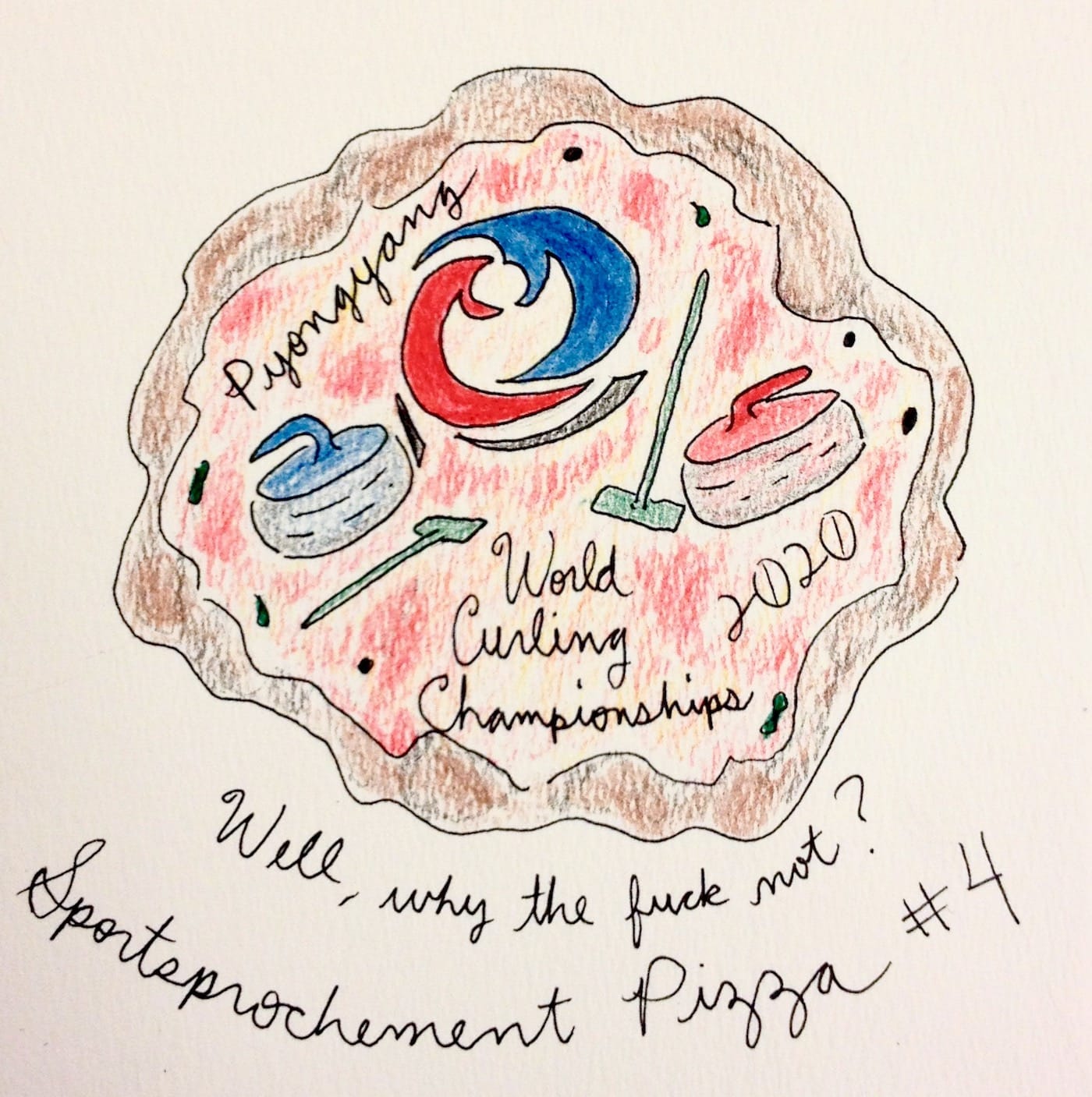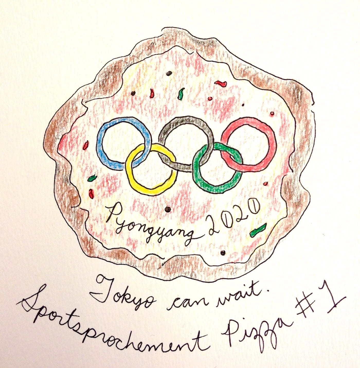When asked what pizza could possibly have to do with this bigger picture involving the Olympic Committee’s bizarre executive decision to move the 2020 games from Tokyo to Pyongyang, albeit as yet without official acceptance from the North Korean regime, she said, “Look, sports are enduringly popular, and international sporting events have been trending higher than ever. And it’s safe to assume that everyone loves pizza. I, for one, could live on it for every meal of every day for the rest of my life. It’s simple and delicious, and moreover, the ways in which it can be variably inflected for cultural preferences, local palettes or dietary issues are infinite.” She then gave a number of examples, in fact far too many to cite here. One of them involved Medjool dates and a balsamic reduction. Another entailed a medley of toppings à la niçoise; another yet, pickled vegetables such as kimchee. One version featured a topping of fried chicken and mashed potatoes, with a crust made of biscuit ingredients.