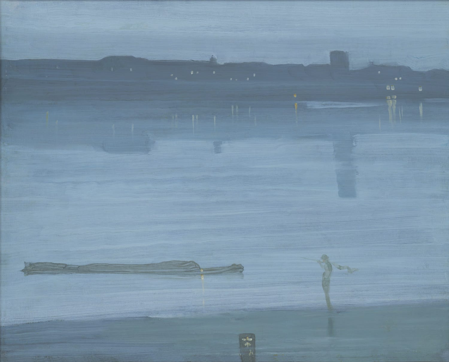 James Abbott McNeill Whistler, "Nocturne: Blue and Silver – Chelsea" (1871), oil paint on wood