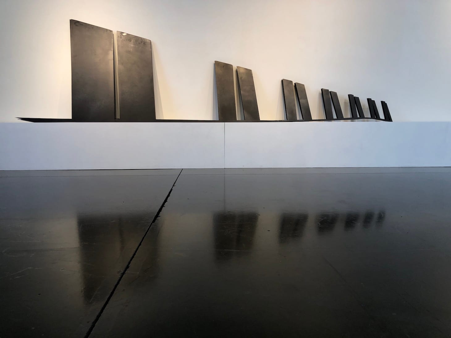 The work in That Mountain Over There (now I see her) is rooted in the New Mexico of Castillo’s youth. “I didn’t know any artists back then,” she told me during a phone interview, “but everybody could make things. I saw people welding, casting concrete, fixing things. And there was this amazing nature.” There were also railroad tracks running 20 yards from her family’s home, which gave Castillo her first sense of how the local was tied to the global. She describes her piece “There’s No Infinity” as an attempt to “capture in a brief gesture that scaling of the tracks to the infinite.” Paired steel rectangles retreat into the distance; but what Donald Judd would have made precise and mathematical becomes, in the hands of Castillo, an organic progression with the groundline swelling and slabs shifting. “Growing up next to the tracks I could see that nothing made by humans is ever perfect.”