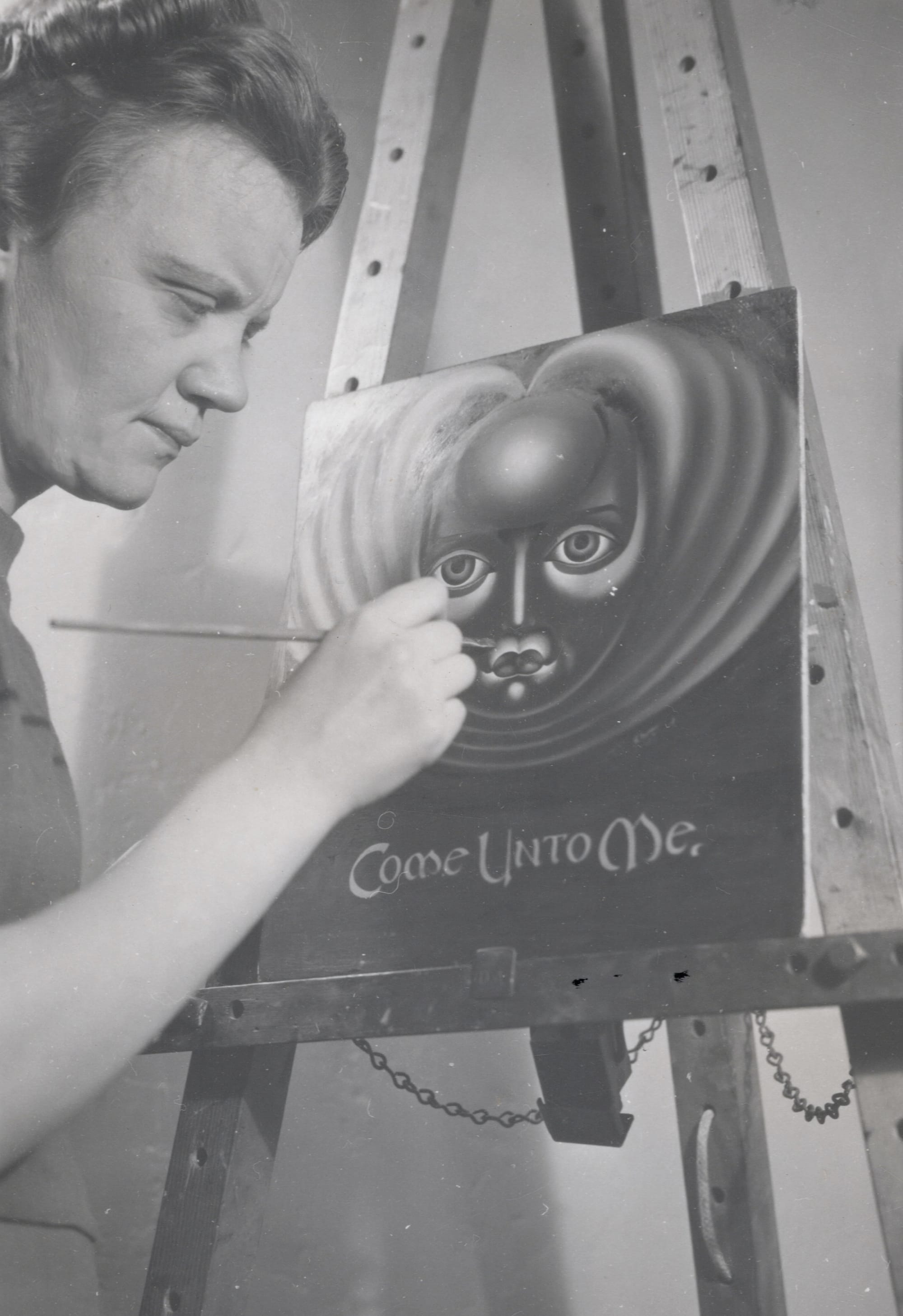 During her time in Los Angeles, Peavy attended séances and became a member of Ewing’s Spiritual Science church, though she was acquainted with members of other theosophical societies in Southern California and overlapping art scenes. These included William Levington Comfort’s theosophical salon in Highland Park, which was attended by artists such as Mabel Alvarez, Agnes Pelton, and Dane Rudhyar (the latter two were both involved with the Transcendental Painting Group).