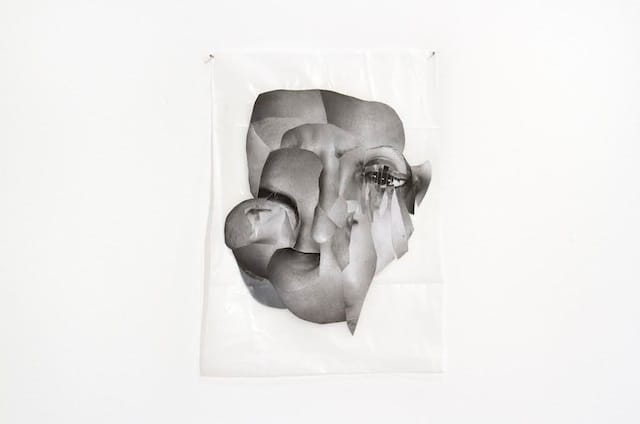 “Over the past year I’ve become increasingly fascinated with selfies and the construction of identity in general, especially the way identity is communicated through the body both as a whole and fragmented into parts, so I was excited to stumble across your selfie series today. The selfie I’m submitting is a piece that was in my BA exhibition at the University of Chicago in June 2013. It’s titled Hybrid Self and it’s made with black and white photographs of my face (printed in a darkroom) collaged onto plastic drop cloth.”