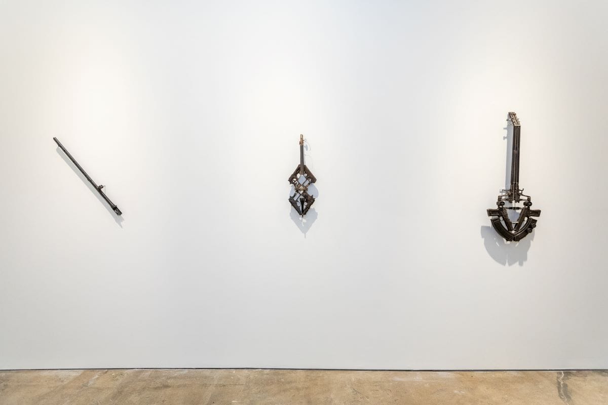 DIRECT ACTION displays some of the artist’s most important community projects. Much of the exhibition is dedicated to Reyes’s ongoing practice of repurposing guns from the streets into everyday objects such as shovels, musical instruments, and most recently flower vases made in collaboration with the advocacy group New Mexicans to Prevent Gun Violence. These stunning, carefully crafted pieces transform the pristine white rooms of SITE into a space for introspection and interaction, offering a new wave of possibilities through the transformation of matter. The same way sculpture is the alteration of materials, Reyes invites us to imagine a world in which the same material that is used for death can be used for expressions of life: trees being planted with the shovels, music produced by the instruments, and flowers sprouting from old guns.