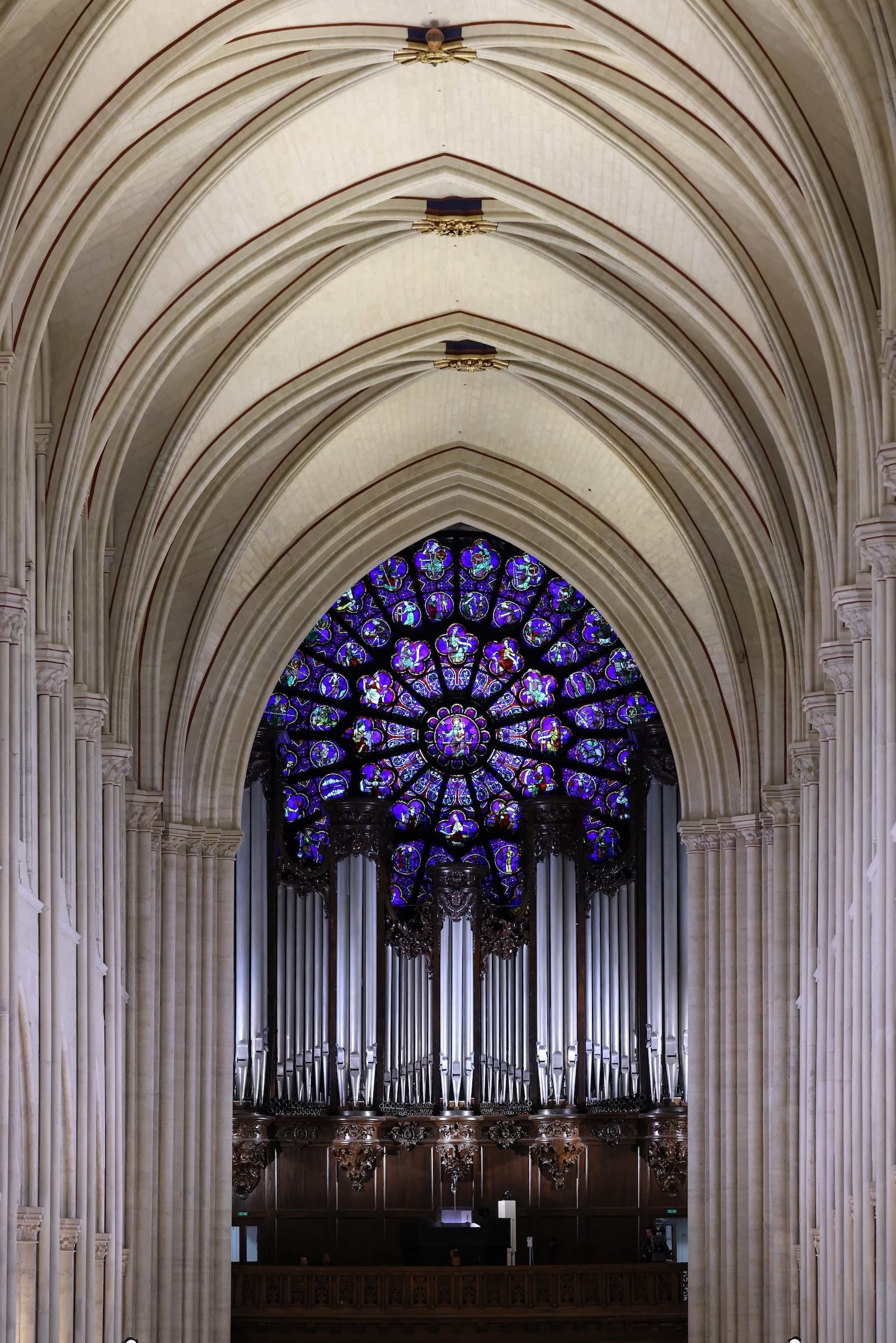 Conservators and other workers restored Notre Dame’s hallmark Gothic stained-glass windows and largely focused on repairing the damaged roof, where the fire broke out. Reports about the restored cathedral characterized it as appearing “lighter” and more colorful due to the removal of smoke damage and dust, which also cleared build-up from centuries of use.