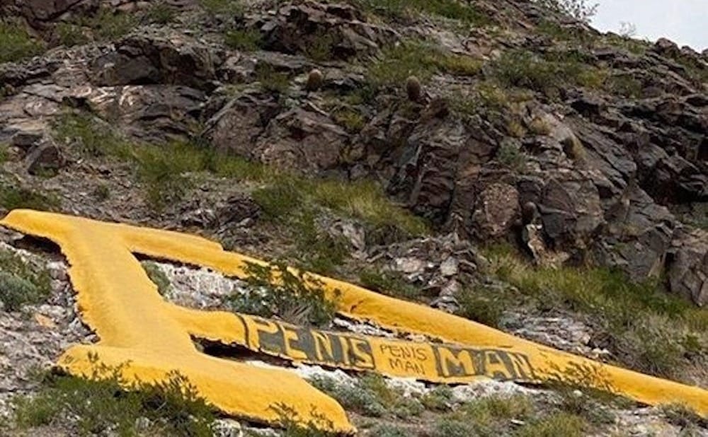 Since late November, the words “Penis Man” have appeared in dozens of public locations across Tempe and Phoenix, Arizona. The phenomenon has been met with mixed reviews. In a segment on ABC15 Arizona, an interviewee says “there’s street art, and then there’s just being obnoxious.” Below that video on YouTube, a comment with 103 likes reads: “The man, the myth, the legend … PENIS MAN!”